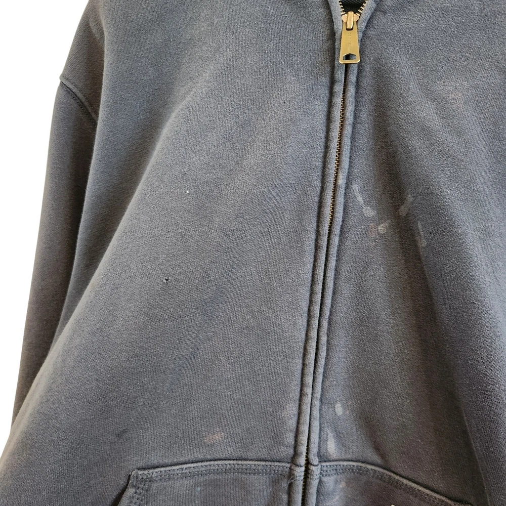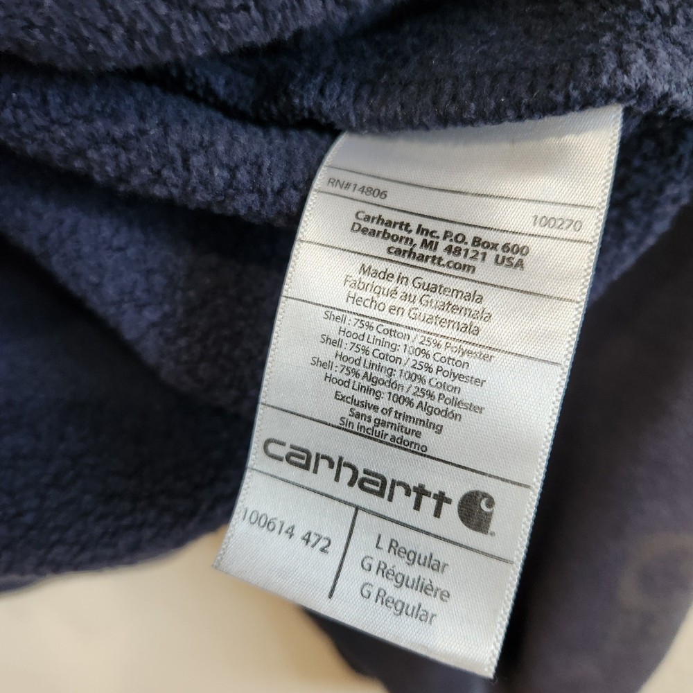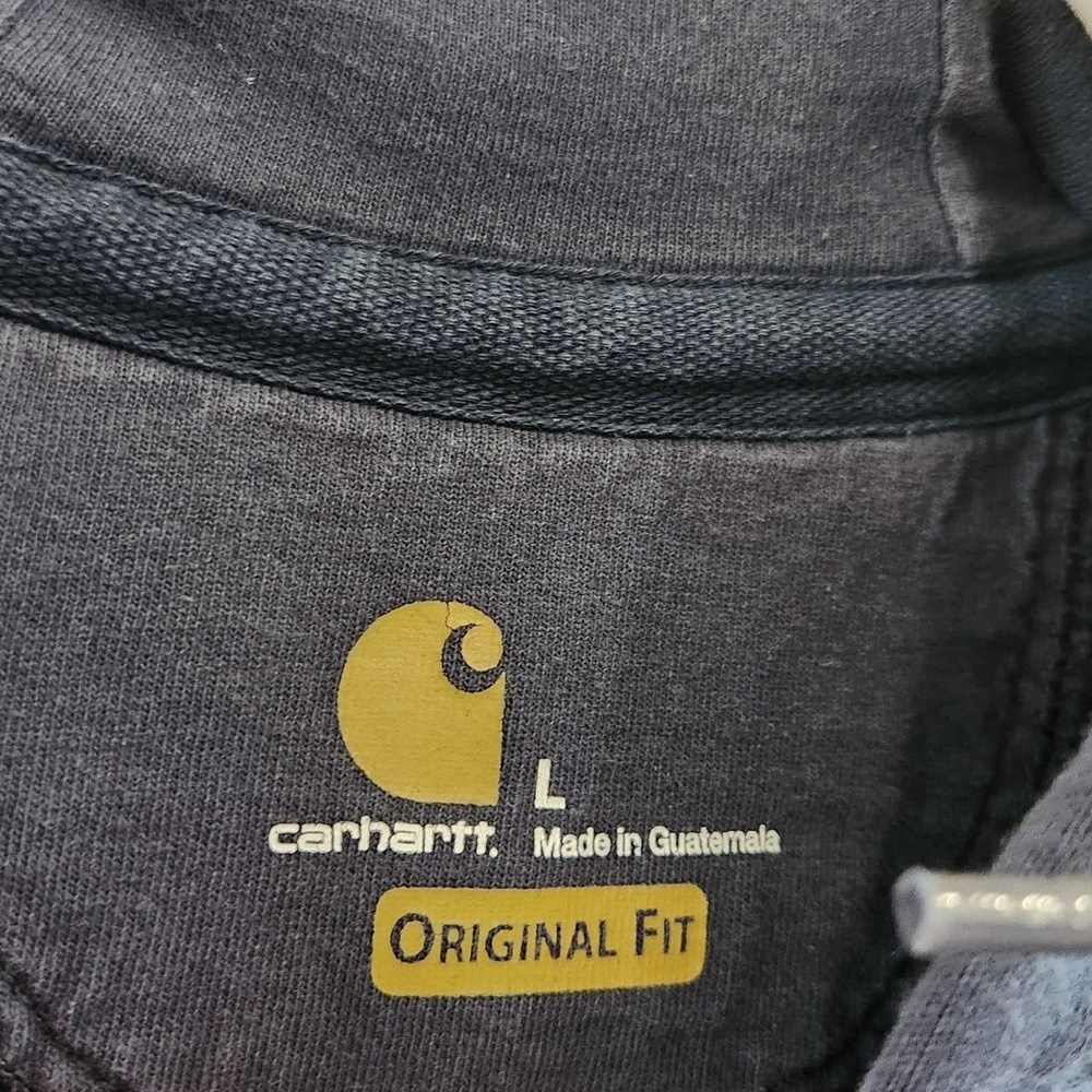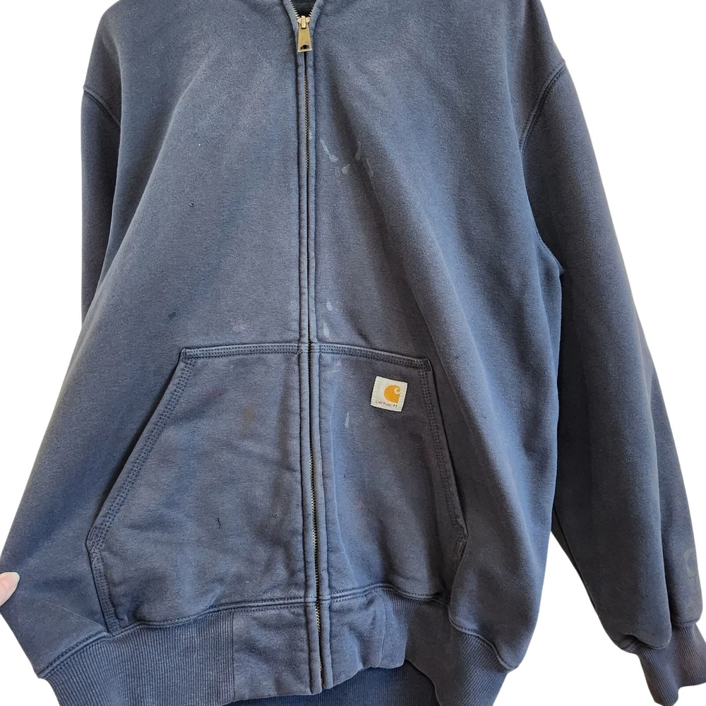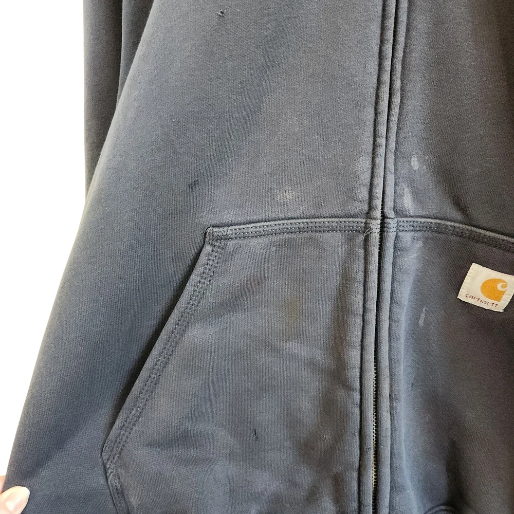 Carhartt Full Zip Long Sleeve Thermal Hoodie Jacket Navy Blue Size Large Condition: fair used condition, some stains and holes as shown in photos. Great as a work wear item or as a thrashed diy piece This Carhartt jacket is perfect for any outdoor activity, whether it be walking, hunting, or hiking. The full zip-up hoodie provides convenience and ease of wear. causal, hiking, cold weather, utility, basic, pullover, outdoors