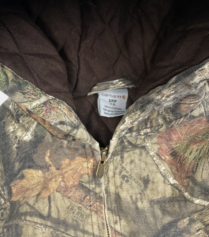 Carhartt Hooded Insulated Canvas Camo Mossy Oak Jacket Youth Boys S Small 7-8