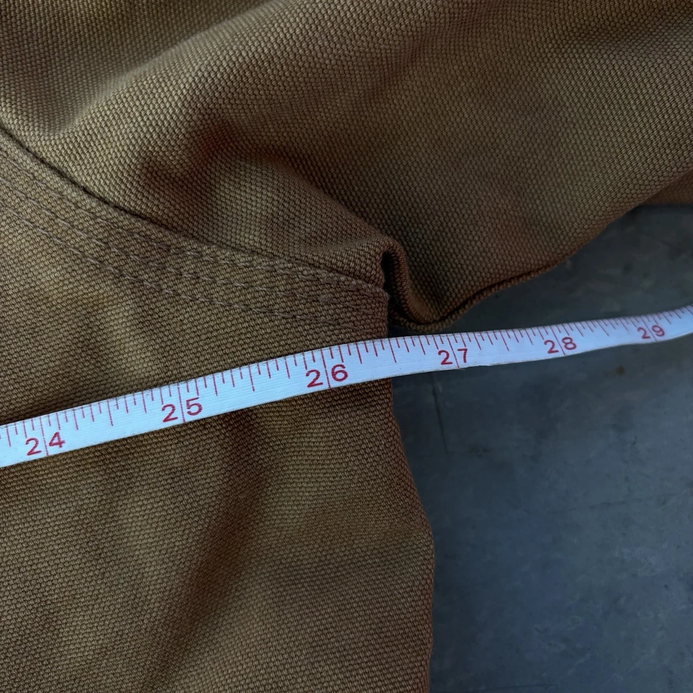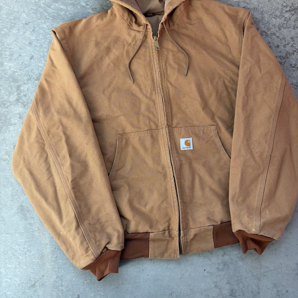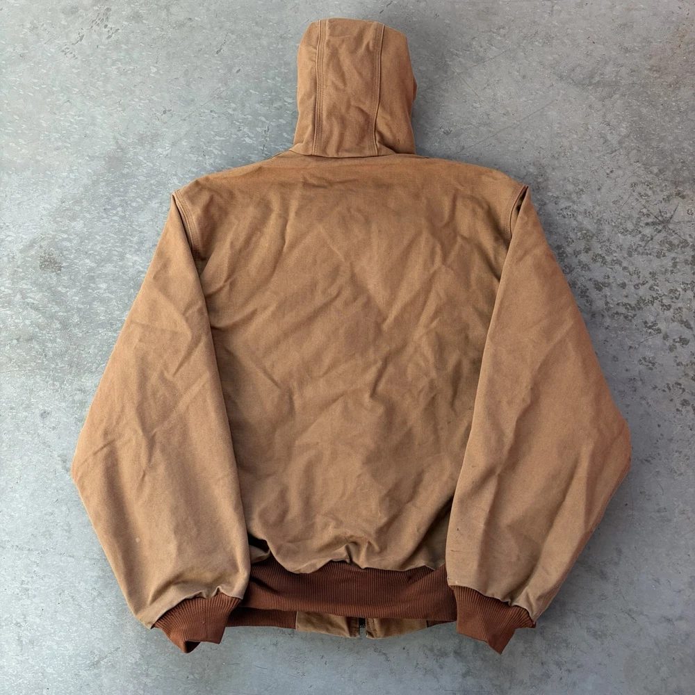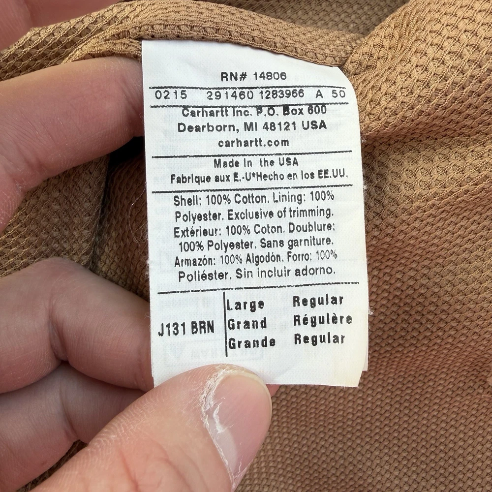 Carhartt J131 BRN Duck Active Jacket Full Zip Union Lined USA Size Large Regular - good condition, signs of wear shown - tagged size large - 26.5” pit to pit - 29” length - 26.5” shoulder to sleeve hem - Please use measurements because it may not fit like a traditional piece. - To ensure best fit, measure your best fitting similar styled garment you own and compare to the measurements provided below. - I inspect every piece carefully to include all signs of wear or flaws I see in the pictures, but please also check carefully for yourself. - Feel free to ask questions about anything you see in the pictures that worry you/you have an inquiry about. - Returns are allowed within 30 days of purchase but buyer pays return shipping.