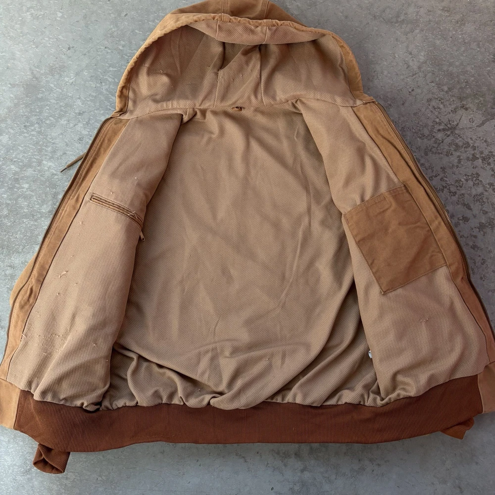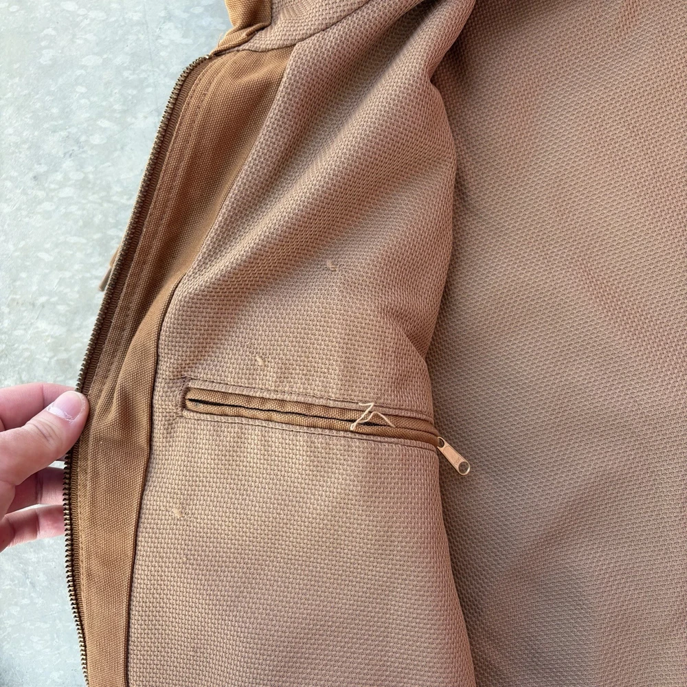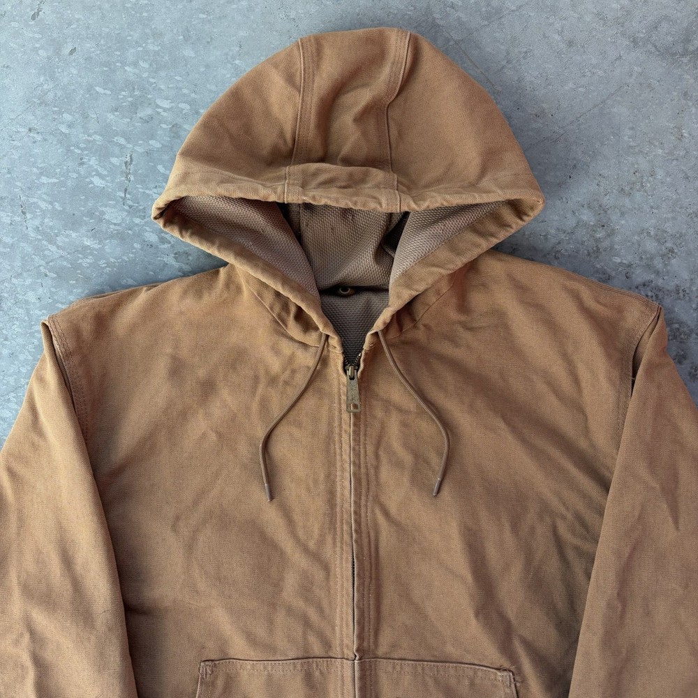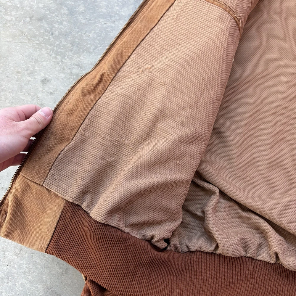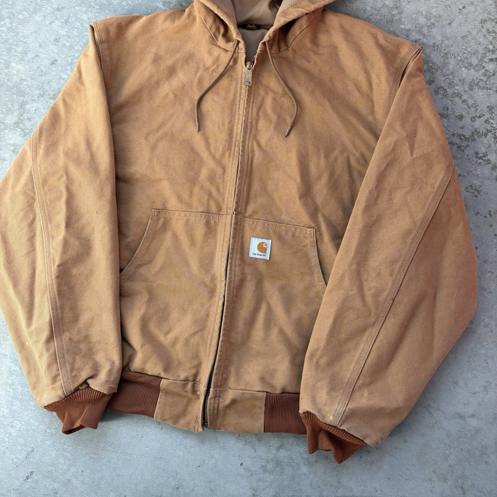 Carhartt J131 BRN Duck Active Jacket Full Zip Union Lined USA Size Large Regular - good condition, signs of wear shown - tagged size large - 26.5” pit to pit - 29” length - 26.5” shoulder to sleeve hem - Please use measurements because it may not fit like a traditional piece. - To ensure best fit, measure your best fitting similar styled garment you own and compare to the measurements provided below. - I inspect every piece carefully to include all signs of wear or flaws I see in the pictures, but please also check carefully for yourself. - Feel free to ask questions about anything you see in the pictures that worry you/you have an inquiry about. - Returns are allowed within 30 days of purchase but buyer pays return shipping.