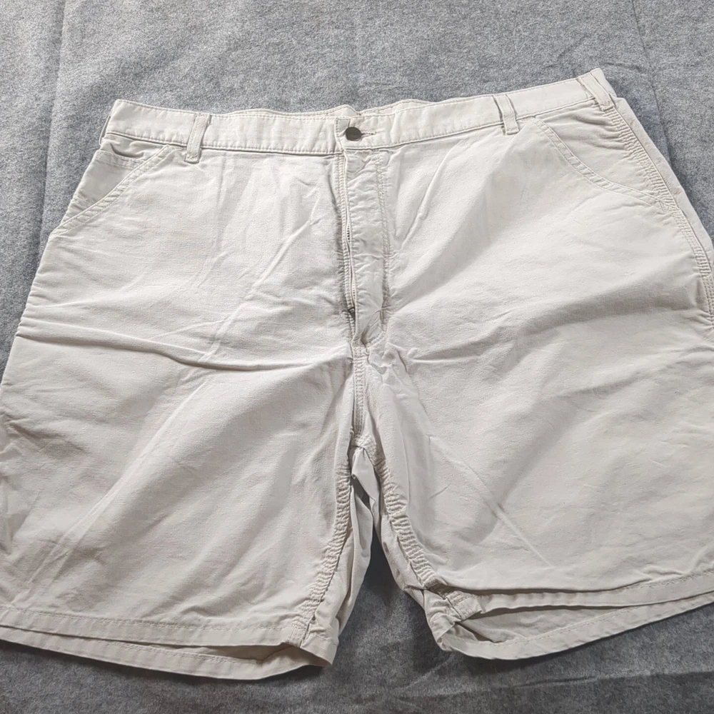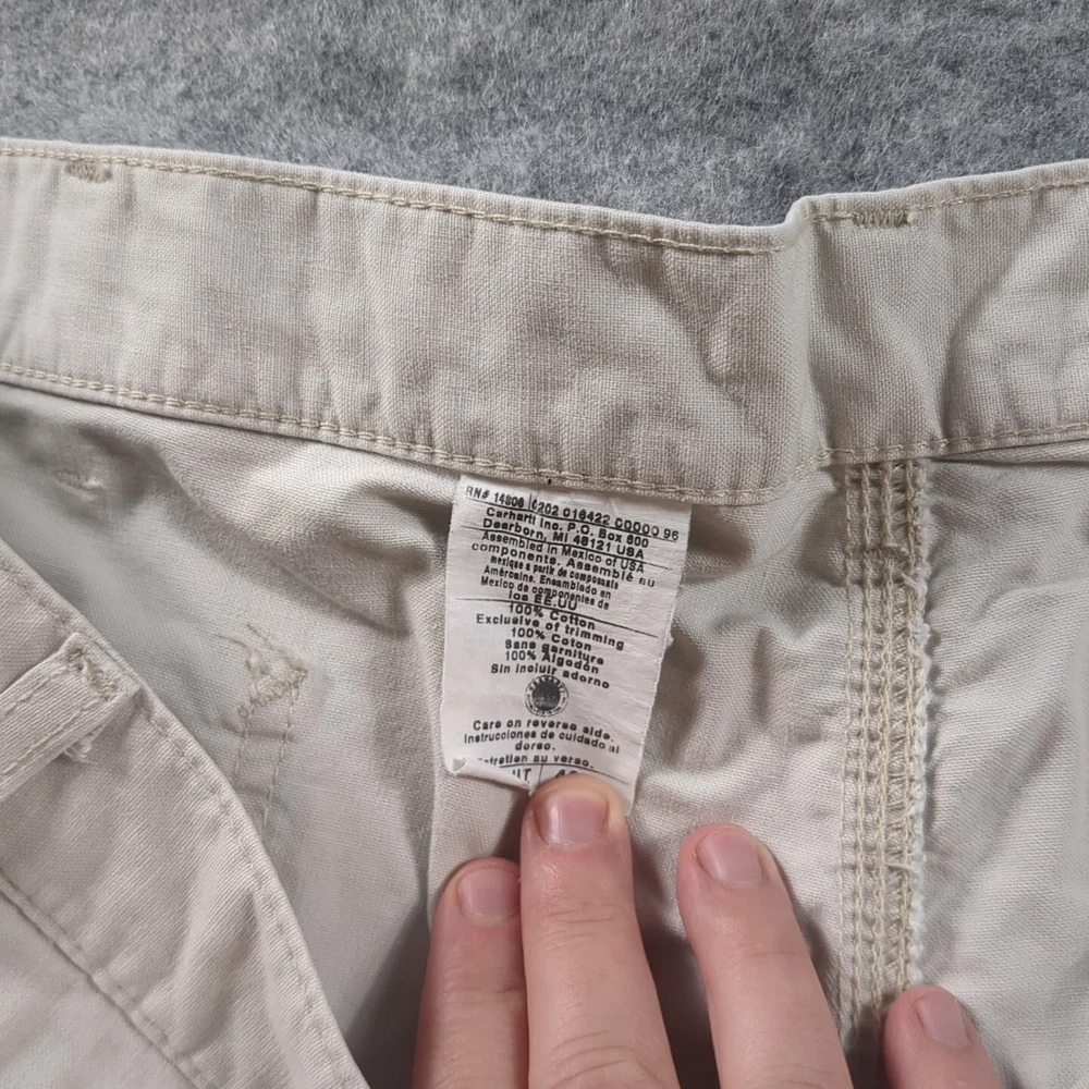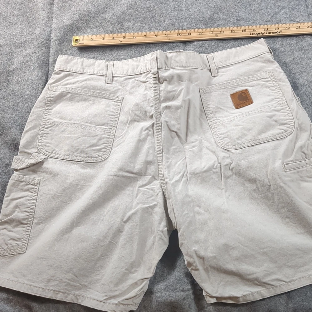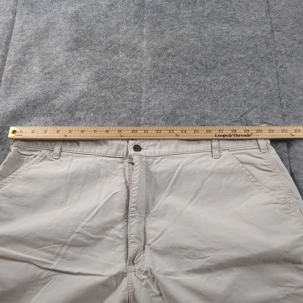 Carhartt Men Shorts 42 White/Gray Canvas Utility Casual Workwear Logo Patch