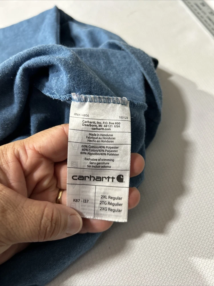 Carhartt Men T-Shirt 2XL Blue Original Fit K87 Short Sleeve Crew Neck