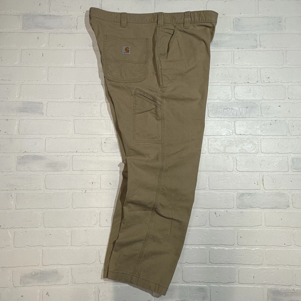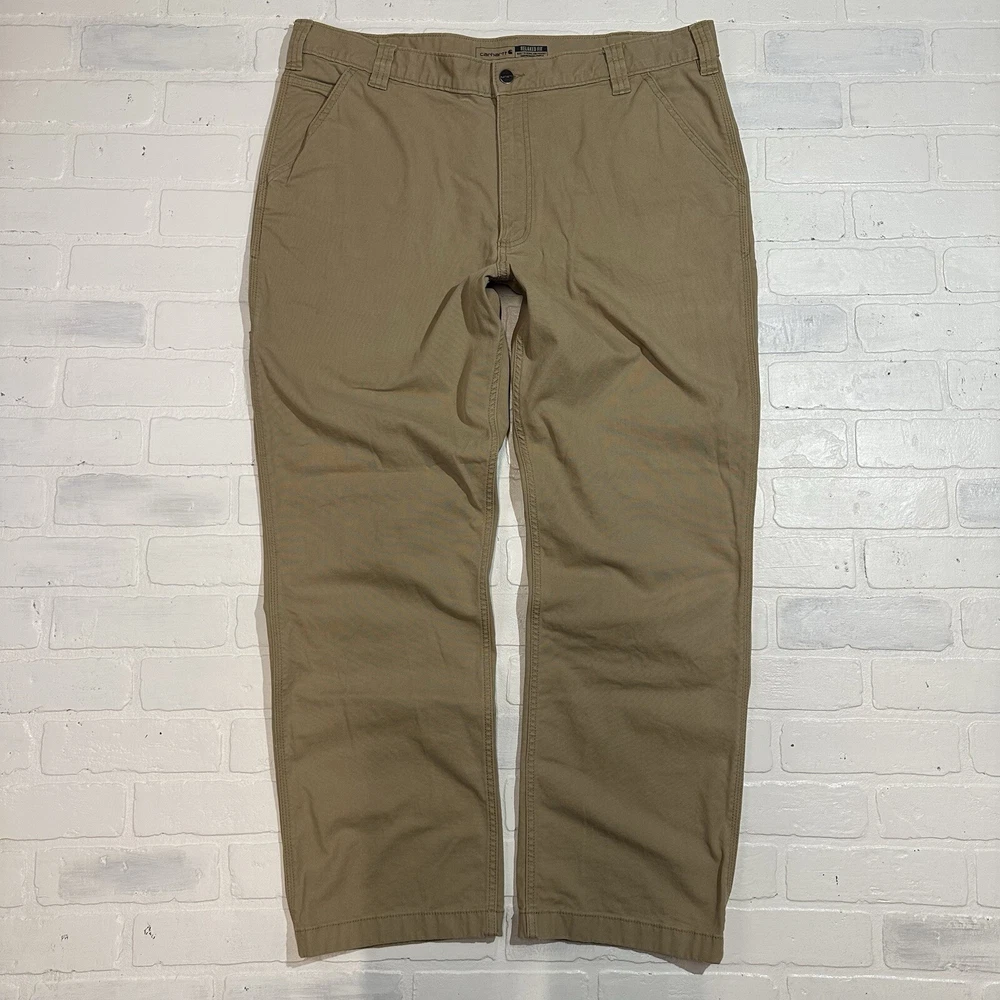 CARHARTT Mens 40x32 Rugged Flex Relaxed Fit CANVAS 5-POCKET WORK PANT - Khaki Brown Seller does NOT accept returns. See photos for measurements & flaws. Sizes vary depending on manufacturer & era. Please review item description, flaws & sizing prior to purchasing.