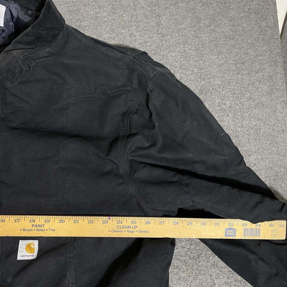 Black Carhartt Arctic Chore Coat J001 BLK. Good used condition. Minimal signs of wear and fade. No major distress. No holes, rips, tears, or stains. Has a quilted inside lining. Tagged a 3XL. Measurements in photos and description! MEASUREMENTS Pit to pit: 28 inches Length: 28.5 inches Shown in photos! ** This item has been washed and cleaned per eBay’s used clothing policy. ** Ships within 24 hours of purchase via USPS Ground Advantage.