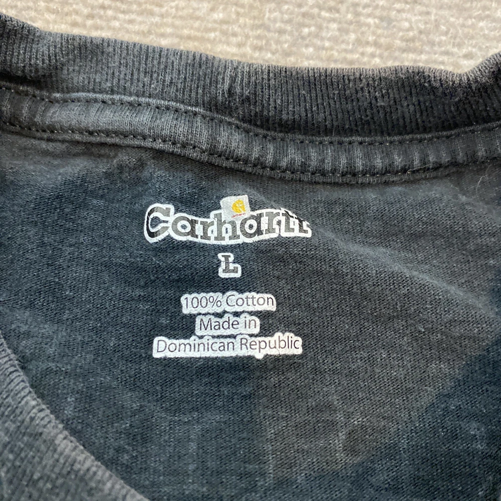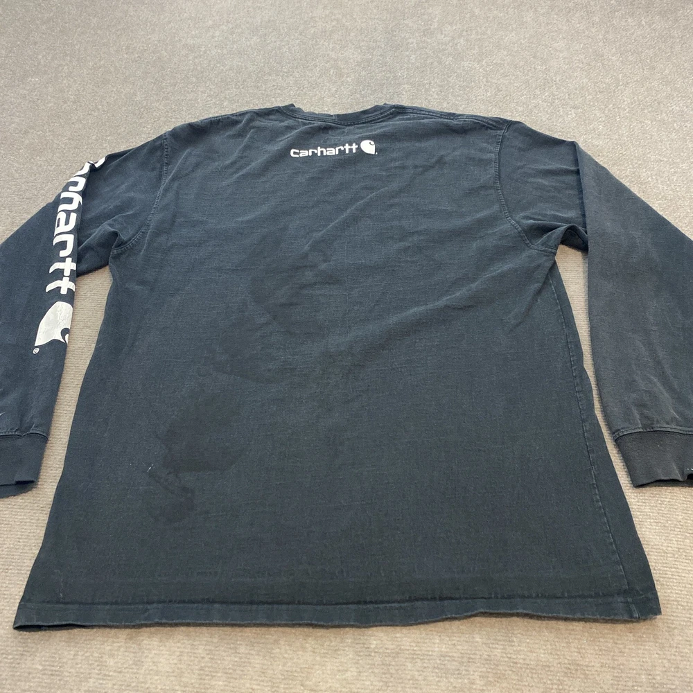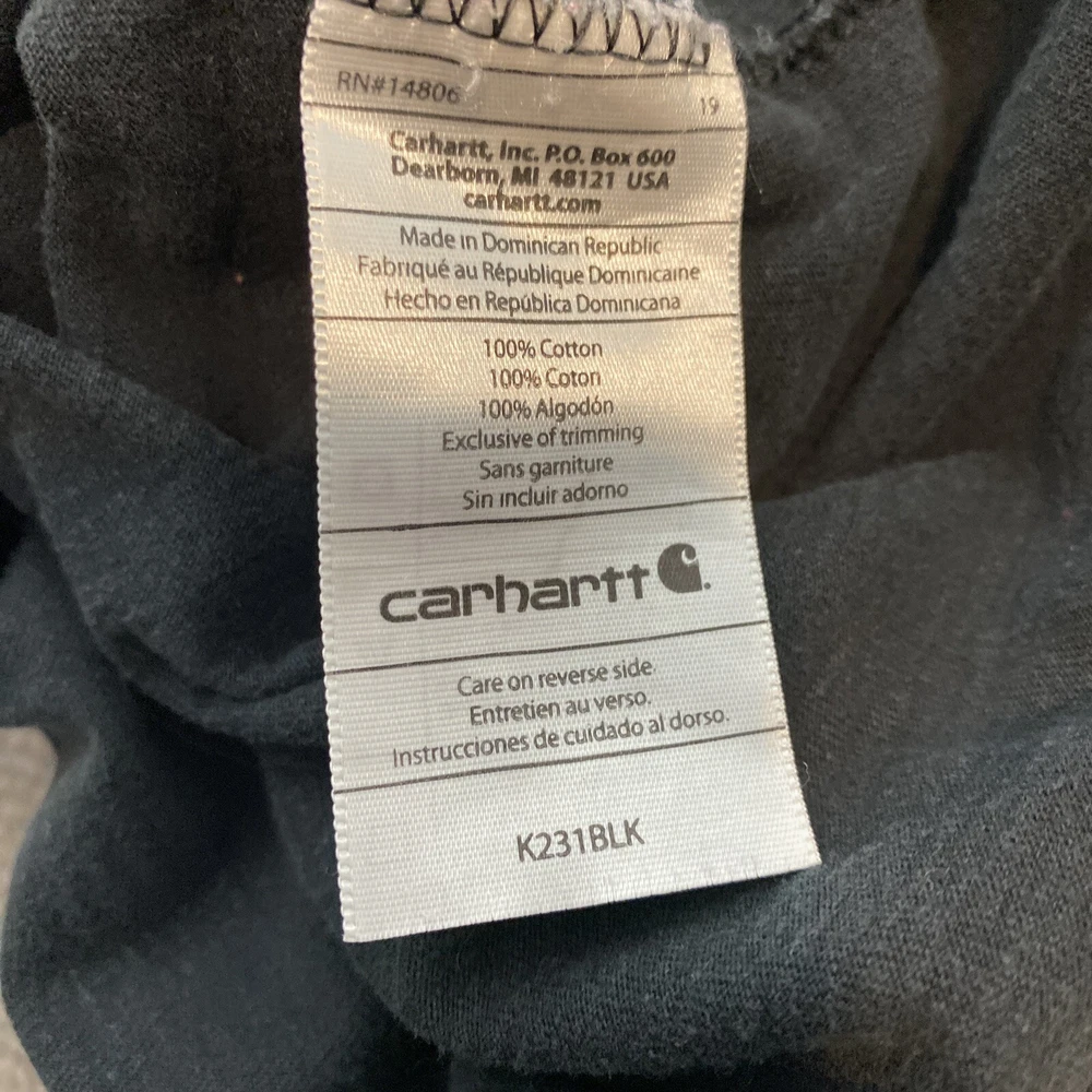 Graphic Print: Yes Accents: Logo Color: Black Material: Cotton, Polyester Department: Men Model: Carhartt K231 Features: Heavyweight Country/Region of Manufacture: Guatemala Neckline: Crew Neck Product Line: Carhartt Brand: Carhartt Sleeve Length: Long Sleeve Garment Care: Machine Washable Type: T-Shirt Season: Fall, Spring, Summer, Winter Vintage: No Theme: Grunge, Outdoor Fabric Type: Knit Size Type: Regular Size: L Pattern: Solid