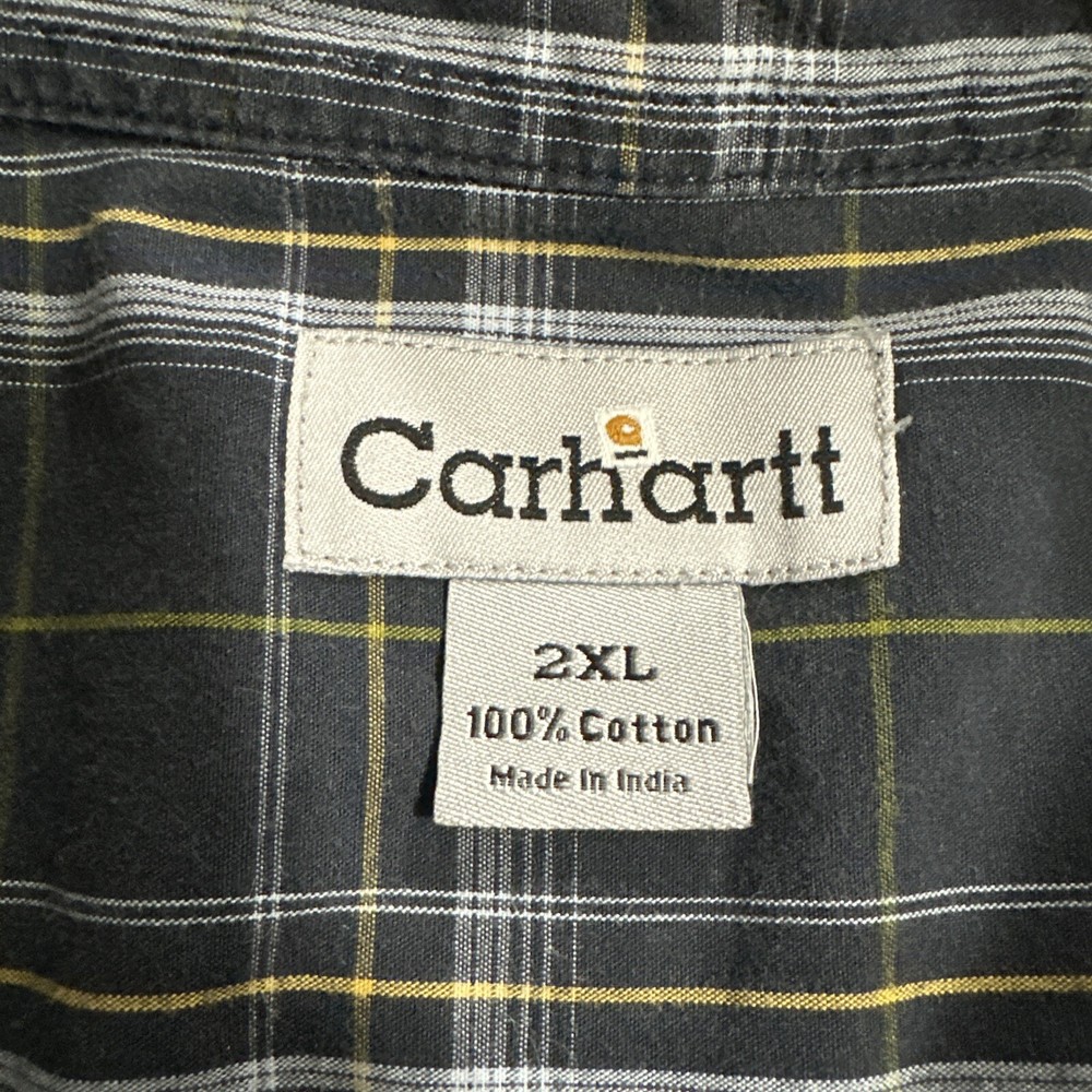 Shirt in great preowned condition See pics for accurate measurements and condition I ship every day Item # 1653 This Carhartt button-down shirt in blue plaid is a must-have for any stylish man's wardrobe. Made from high-quality cotton material, this shirt is designed to keep you comfortable all day long. It features a button-down collar and long sleeves, making it perfect for both casual and formal occasions. The shirt is available in size 2XL, which makes it suitable for men of all sizes. With its stylish pattern and excellent craftsmanship, this Carhartt shirt is a great addition to any collection. Buy it now and elevate your style game to the next level!