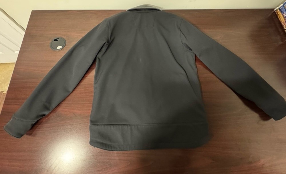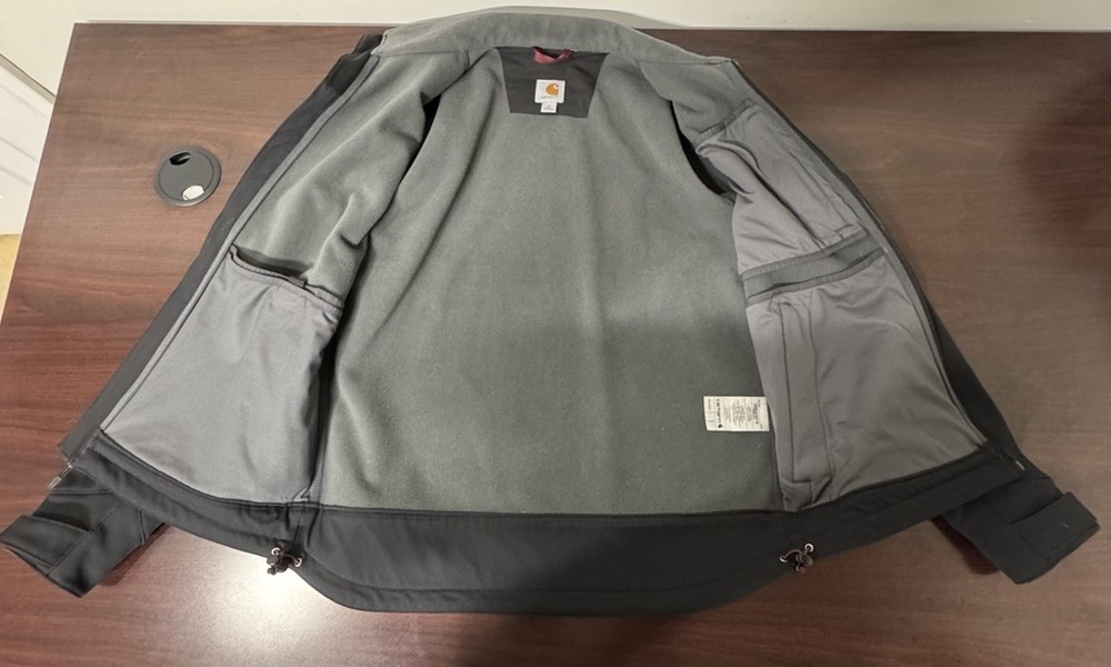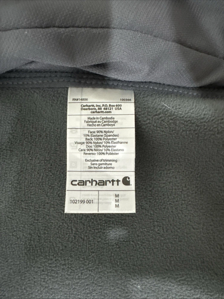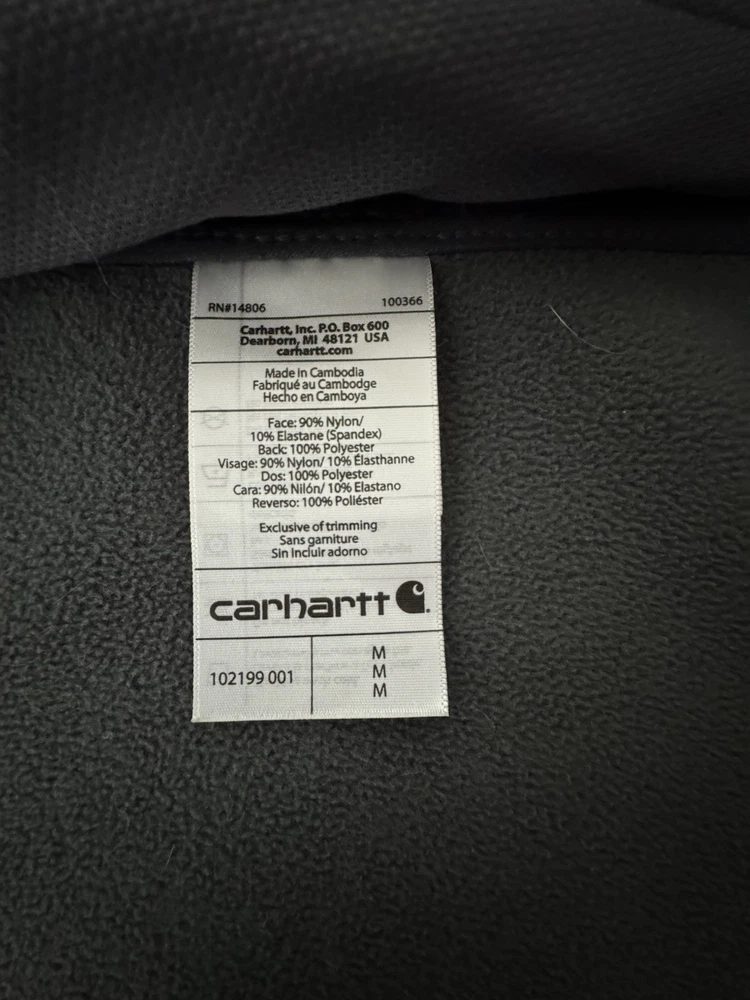 This Carhartt Soft Shell Jacket in Men's Size M Black is a versatile and practical outerwear option for casual occasions. Made with durable nylon outer shell material and lined with cozy polyester fleece, this jacket is perfect for outdoor activities in all seasons. The relaxed fit design ensures comfort and freedom of movement, while the zip closure and logo accents add a touch of style. Suitable for winter, fall, and spring, this rain coat from Carhartt is a reliable choice for the modern man on the go. Only worn once