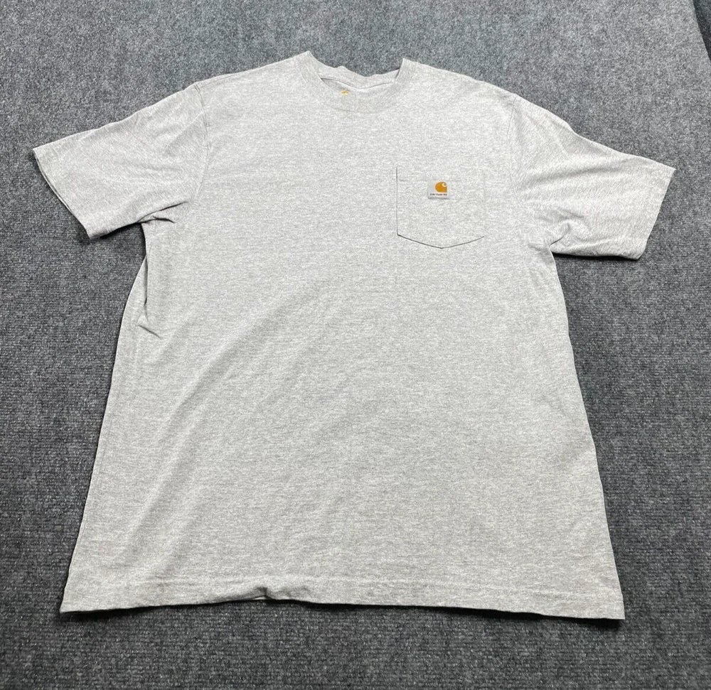 This Carhartt Men's Original Fit Heavyweight Short-Sleeve T-Shirt is a must-have for any outdoor enthusiast. Made from high-quality cotton and cotton blend material, this shirt is perfect for summer, fall, and spring seasons. The shirt features a solid pattern with a gray color and Carhartt logo accents. The shirt has a crew neck and short sleeves, making it a comfortable and versatile addition to your wardrobe. It is easy to care for and can be machine washed. The shirt is available in size M and has a regular fit. This shirt is perfect for those who love classic 80s and 90s style. Get yours today and enjoy the comfort and style that Carhartt offers.