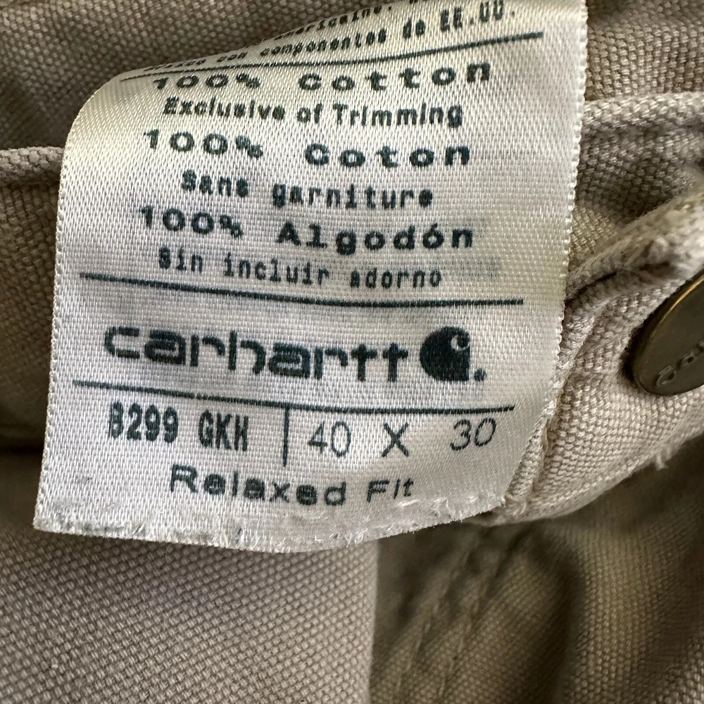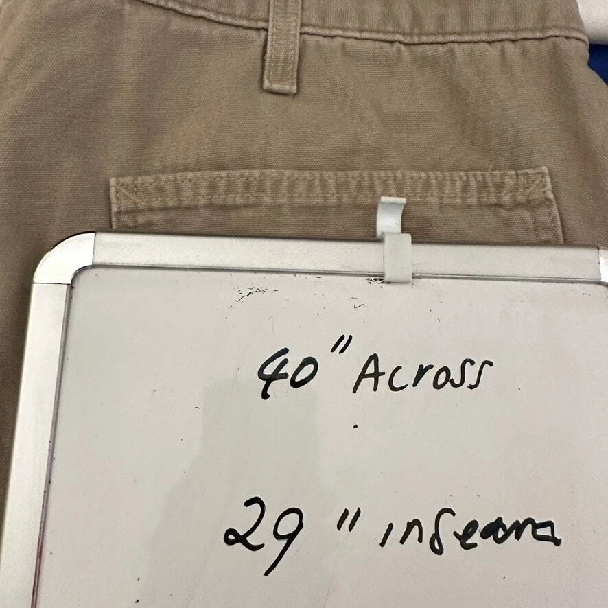 Carhartt Mens 40x30 Relaxed Fit Work Pants Cotton Twill Khaki Preppy Casual Size: 40x30 Approx. measurements: 40" across waist, 29" inseam Condition: Pre-owned good. Pre-loved and in gently used condition. Light wear. No rips or holes. One tiny light spot on the back of the pants. Please see photos. - see all pics for any wear/condition Actual colors may vary. We do our best to ensure that our photos are as true to color as possible. However, due to photographic lighting sources, inconsistencies of various monitors settings, we cannot guarantee that the color you see accurately portrays the true color of the product. work, workwear, work wear, wear to work, classic, casual, preppy, streetwear