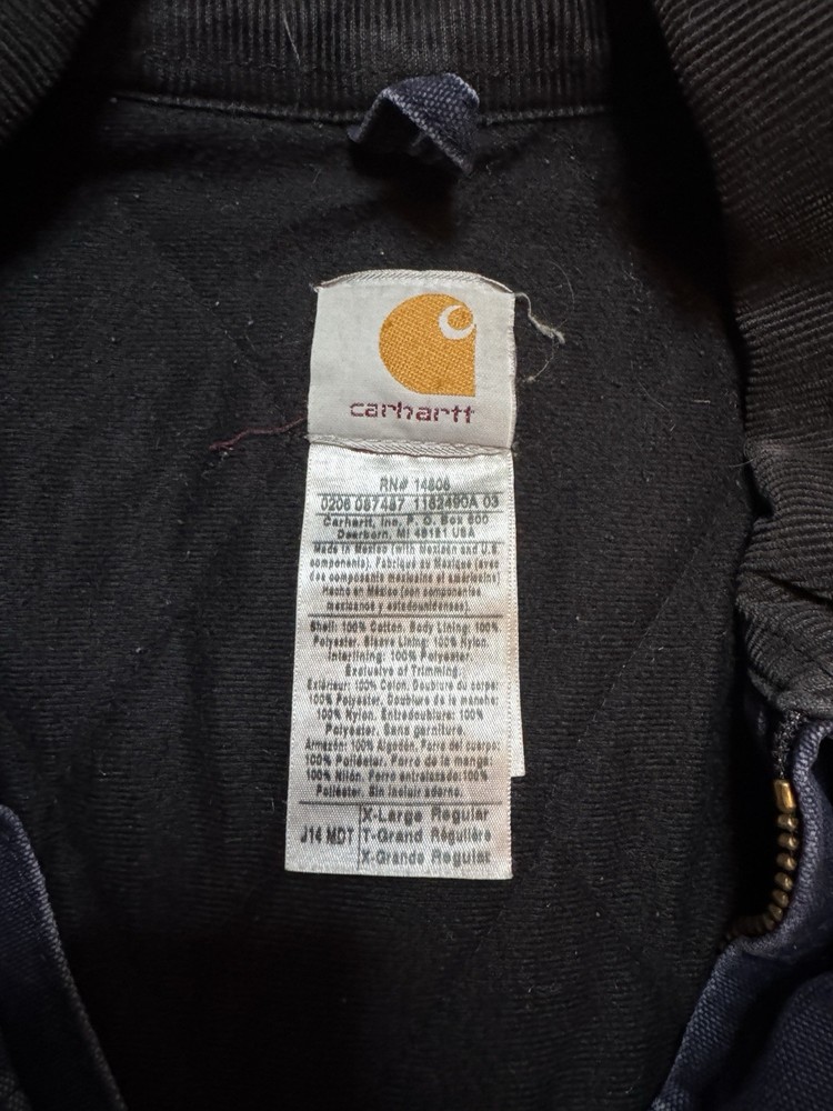 This Carhartt jacket has such a cool vintage vibe with its distressed navy blue finish and faded look. The two repair patches add character, and the replaced zipper works smoothly. Despite the repairs, it’s in great shape—super sturdy and full of rugged charm. Perfect for anyone who loves a well-worn, durable jacket with a story!