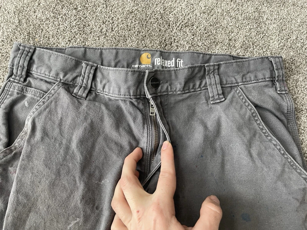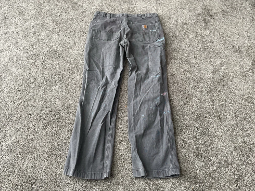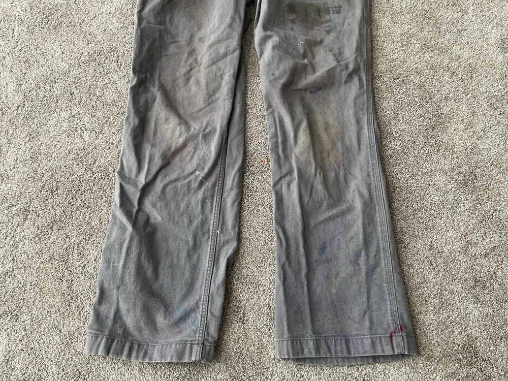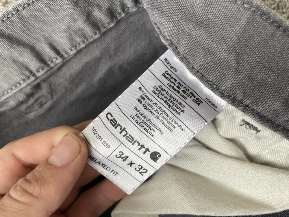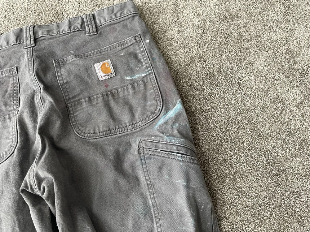 Upgrade your workwear with these Carhartt Painter Pants for Men. These pants come in a stylish gray color and have a relaxed fit for maximum comfort. They are made of a durable canvas material that can withstand any job and are machine washable for easy care. The pants feature a flat front with a button and zipper closure and have a five pocket design for convenience. The pants are perfect for travel, casual wear, and workwear. They are made in Bangladesh and are branded with the Carhartt logo. These pants are a great addition to any wardrobe and are perfect for those who work in the construction industry.