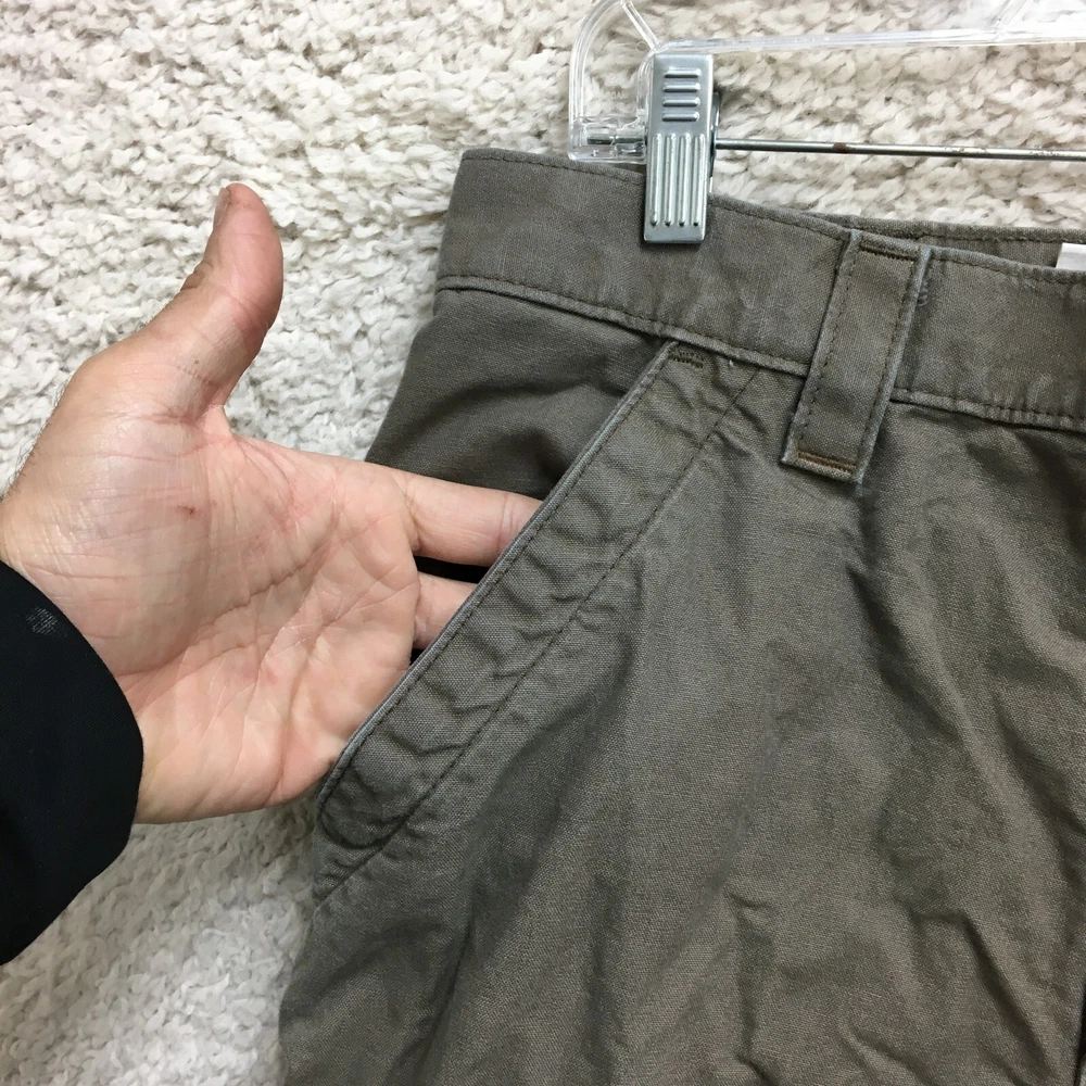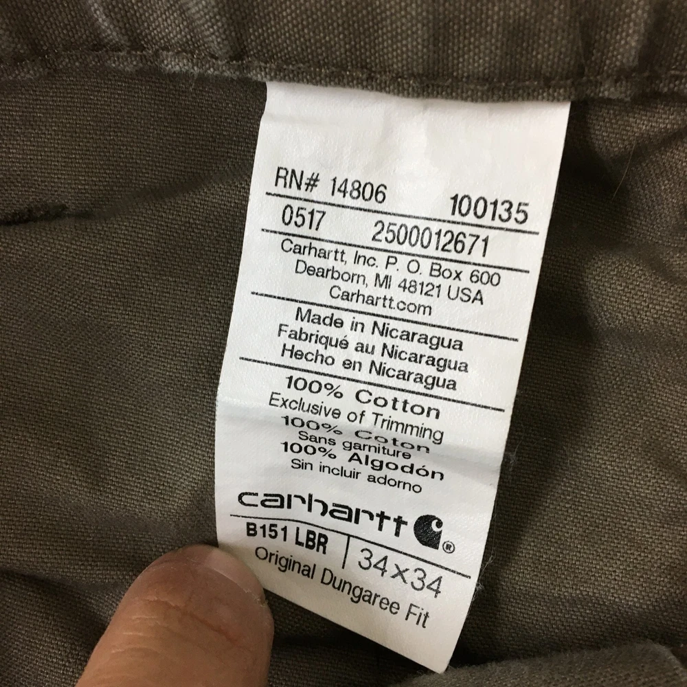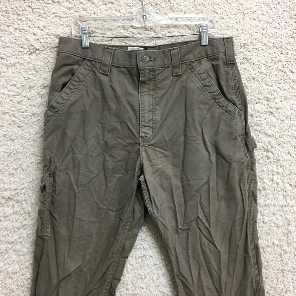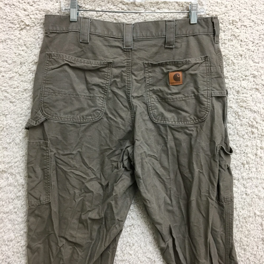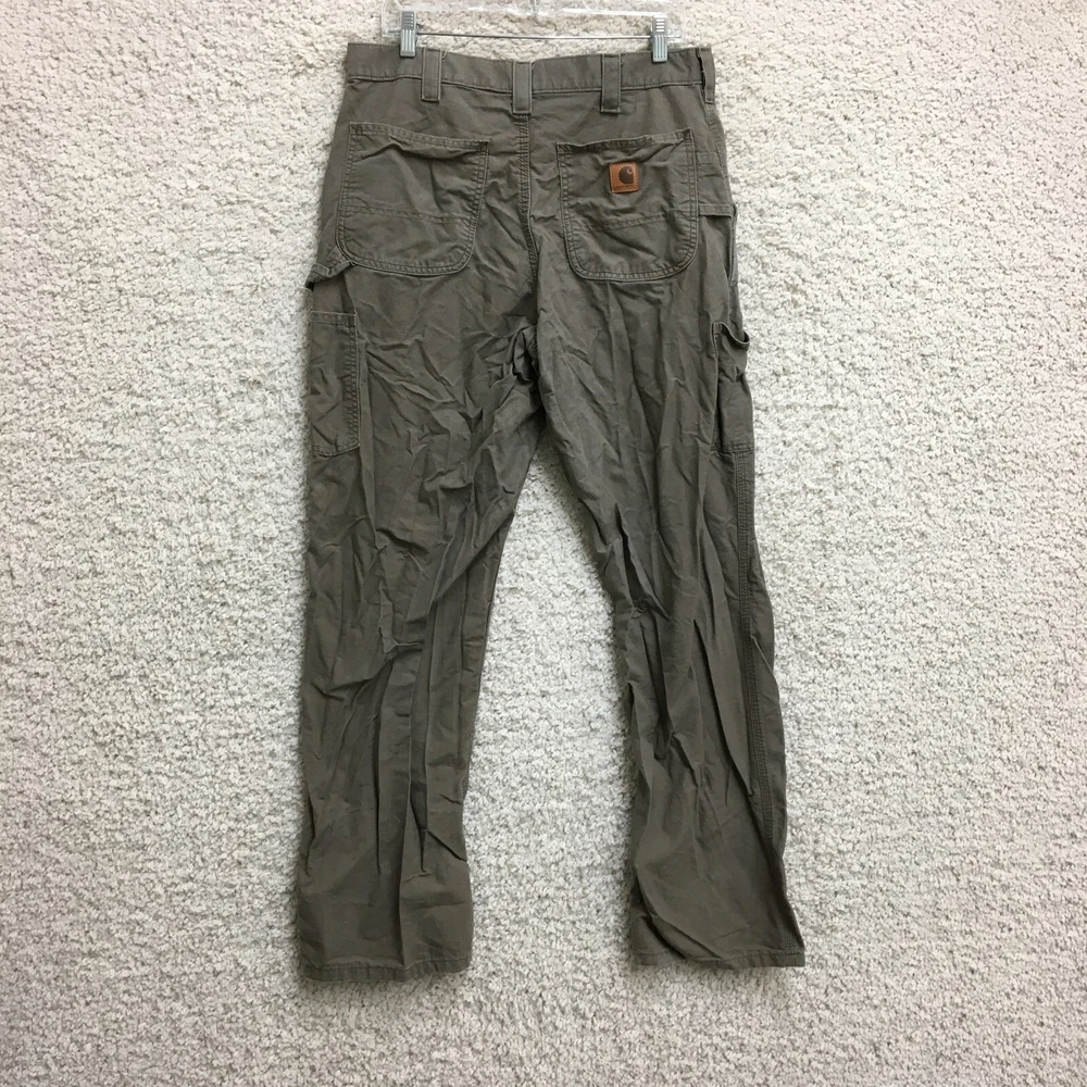 Waist Size: 34 in Leg Style: Straight Rise: Mid (10-12 in) Color: Brown Accents: Button, Logo Type: Pants Theme: Logo, USA Pocket Type: 5-Pocket Design Closure: Button, Zip Season: Fall, Spring, Summer, Winter MPN: bn2517-m Department: Men Size Type: Regular Occasion: Casual, Travel, Workwear Style: Carpenter Country/Region of Manufacture: Nicaragua Fabric Type: Canvas Pattern: Solid Seller Notes: “Good Used Condition. Please, See Pictures for Full Condition and Measurements.” Size: 34 Material: Cotton Brand: Carhartt Front Type: Flat Front Features: Comfort, Easy Care, Pockets Garment Care: Machine Washable Inseam: 33 in Fit: Relaxed
