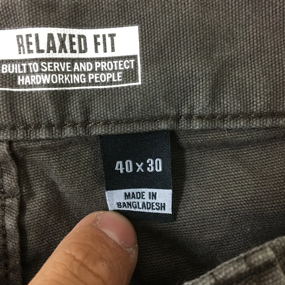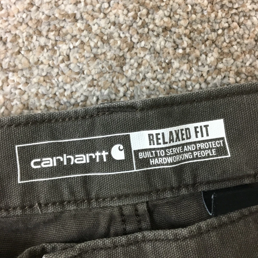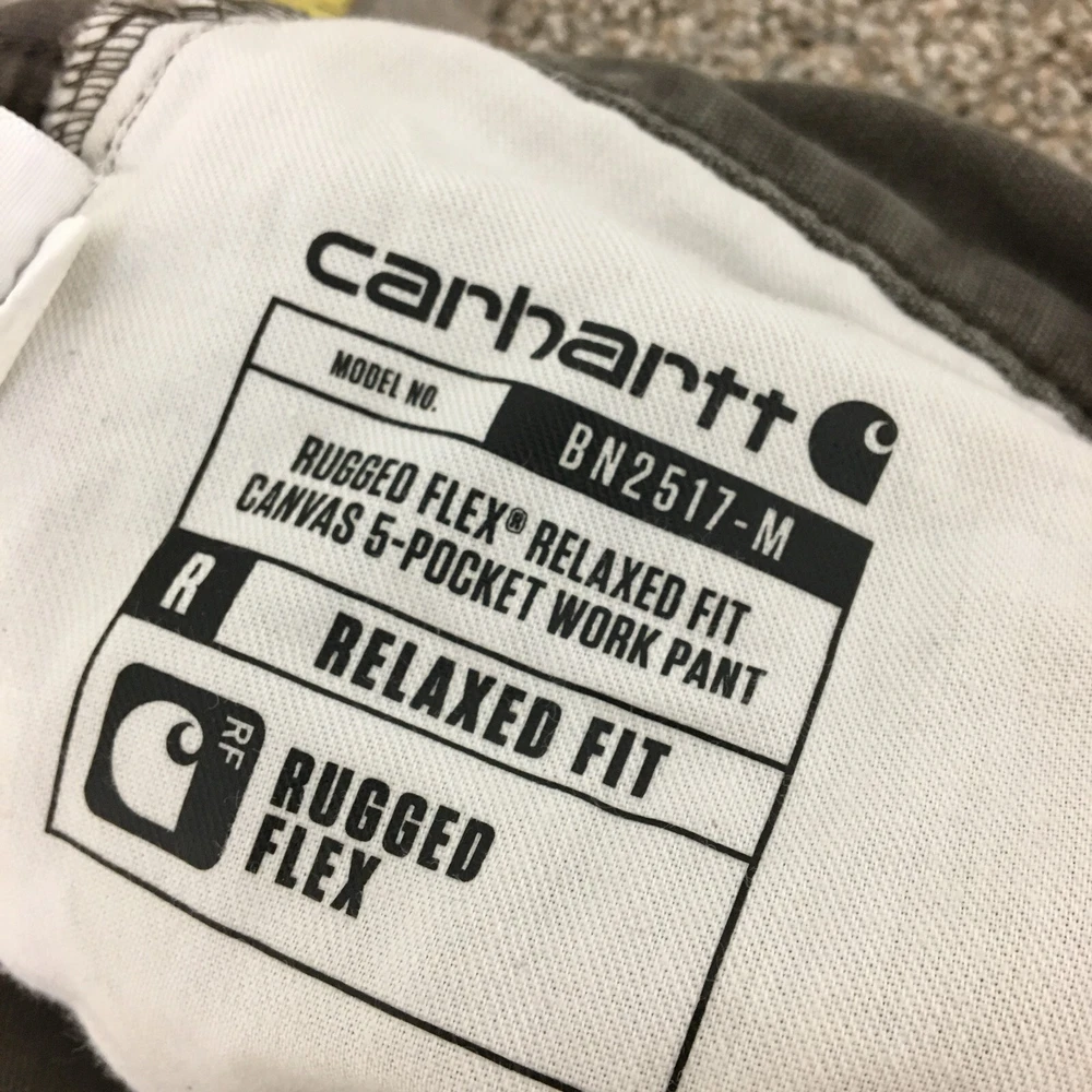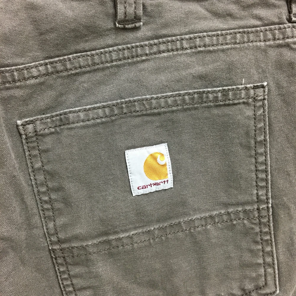 Pattern: Solid Pocket Type: 5-Pocket Design Season: Fall, Spring, Summer, Winter Department: Men Theme: Logo, USA Front Type: Flat Front Size: 40 Fit: Relaxed Rise: Mid (10-12 in) Fabric Type: Canvas Accents: Button, Logo Leg Style: Straight Country/Region of Manufacture: Bangladesh Waist Size: 40 in Brand: Carhartt MPN: bn2517-m Features: Comfort, Easy Care, Pockets Inseam: 29 in Occasion: Casual, Travel, Workwear Material: Cotton, Cotton Blend, Spandex Color: Gray Garment Care: Machine Washable Style: Carpenter Size Type: Regular Closure: Button, Zip Seller Notes: “Good Used Condition. Please, See Pictures for Full Condition and Measurements.” Type: Pants