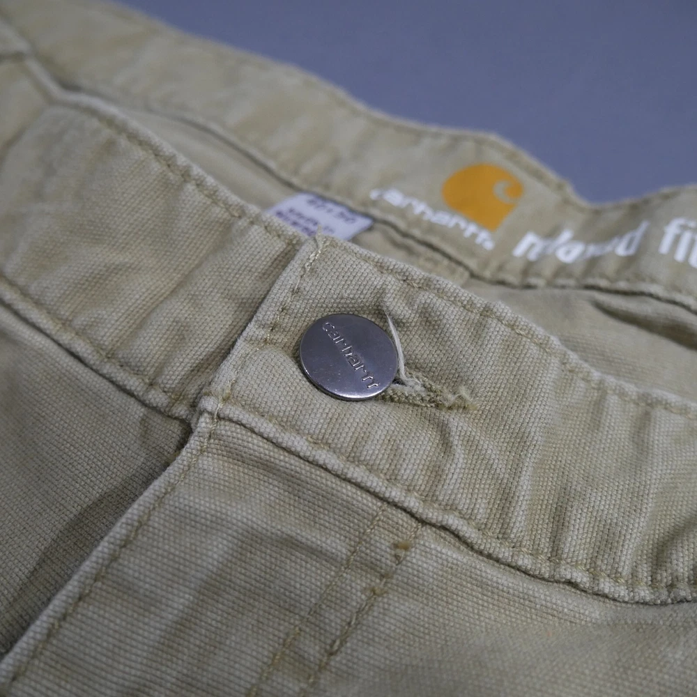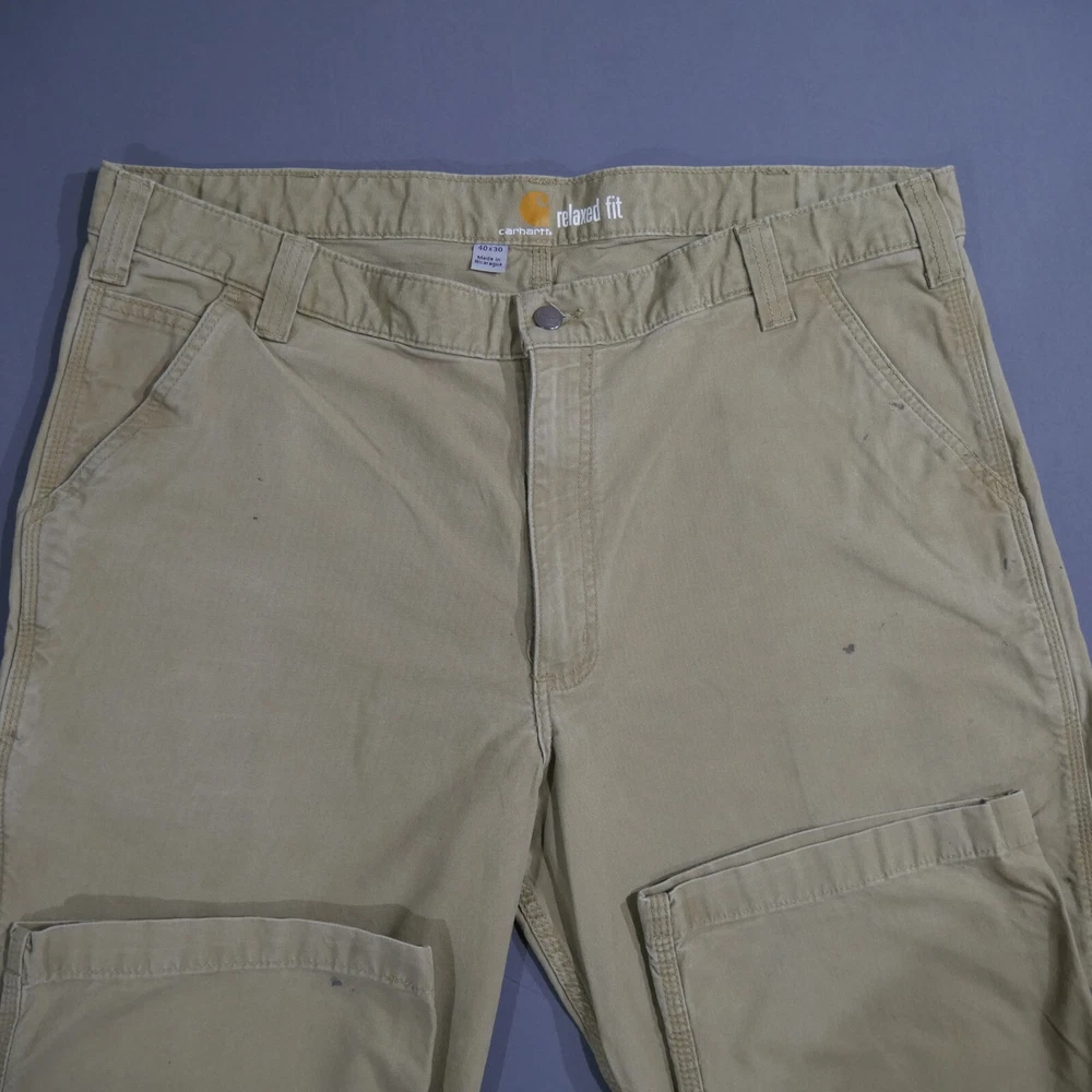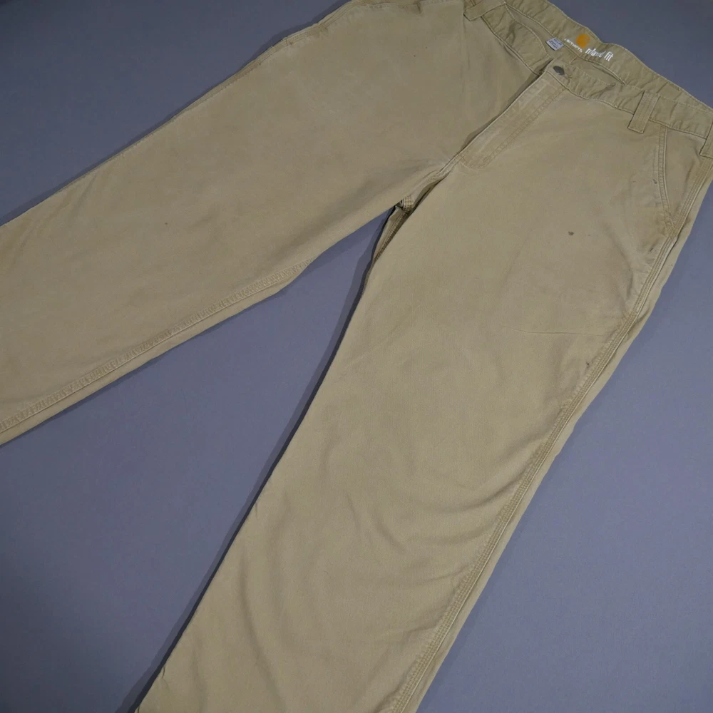 Carhartt Pants Adult 40x30 Rugged Flex Canvas Relaxed Fit Khaki 102291 253 Mens In Good Used Condition Does Have Some Stains See All Photos For More Details Measurements are approx. Please compare to some of your favorite garments for reference points. Color may vary due to photography lighting. We Post New Items Daily! Thank You For Looking At Our Listing! Waist - 39 inches Inseam - 29.8 inches
