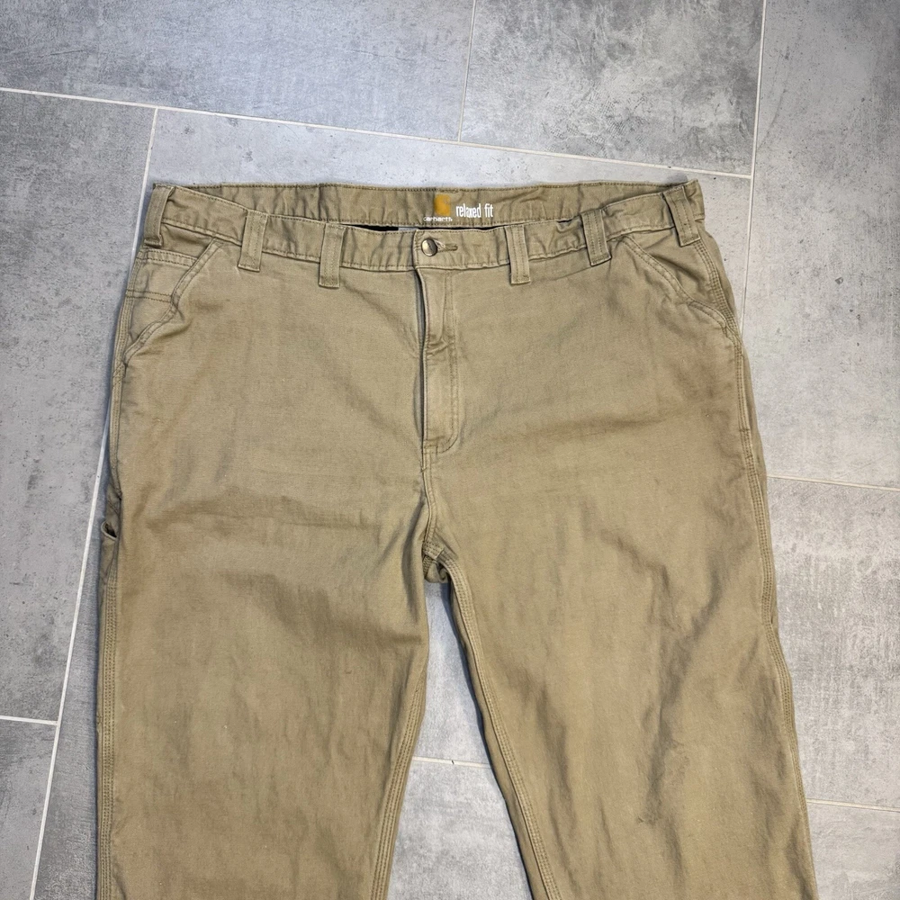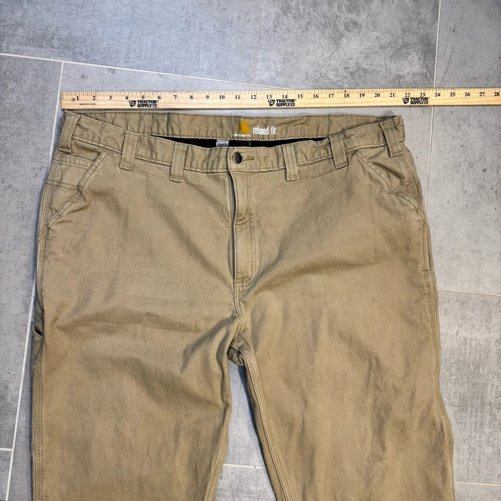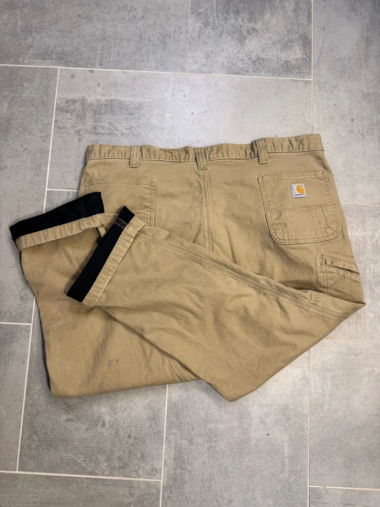 Carhartt Rugged Flex Rigby Fleece-Lined Carpenter Pants Men’s 44x30 Tan Winter Work Pants Stay warm and comfortable during colder months with these Carhartt Rugged Flex Rigby Fleece-Lined Carpenter Pants. Designed for durability and comfort, these pants are ideal for work or casual wear in winter conditions. Very good preowned condition with no significant flaws. Care tag is missing, but size tag is intact. Details: Brand: Carhartt Style: Rugged Flex Rigby Fleece-Lined Carpenter Pants Color: Tan Size: 44x30 (actual measurements: 45x29) Material: Fleece-lined for extra warmth Features: Durable construction: Triple-stitched seams and YKK zipper Fleece lining: Perfect for cold weather Relaxed fit: Provides comfort and ease of movement Utility-focused design: Classic carpenter style with plenty of pocket space Approximate Measurements (Laid Flat): Waist: 22.5” Inseam: 29” Rise: 12.5” Leg Opening: 9” Condition: These pants are in very good preowned condition, showing light wear consistent with previous use. Perfect for winter work or outdoor activities. Ships quickly from a smoke-free home. Feel free to ask any questions before purchasing!