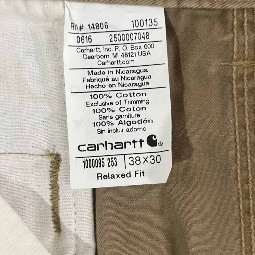 Carhartt Mens pants 38x30 Brown tan Preowned with no rips stains or tears unless noted in pictures .