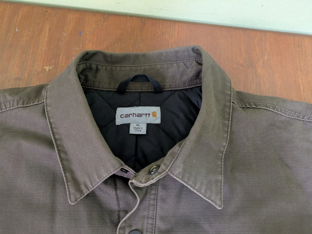 The Carhartt 101466 909 Chatfield Quilted Lined Men's Jacket in Brown is a stylish and functional bomber jacket designed for men. Made with a durable cotton outer shell and insulated with polyester, this jacket provides warmth and comfort during cold weather. The nylon lining adds an extra layer of coziness, while the ripstop fabric ensures durability. With a regular fit and size XL, this jacket is perfect for everyday wear. In very good pre-owned condition with some signs of wear. Please see pictures for the cosmetic condition and dimensions.