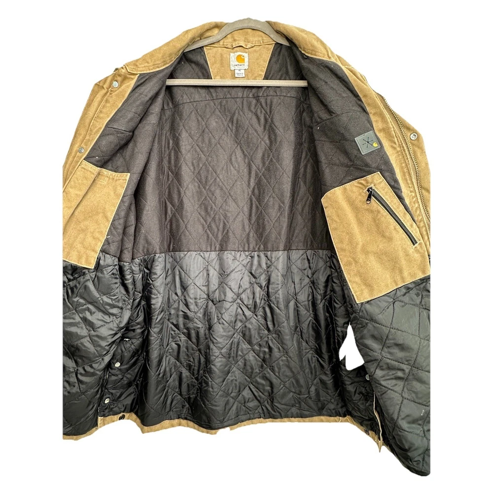 Carhartt Rancher Chore Coat Quilt Lined Men's Size XL Sandstone Barn Jacket In great condition! Measurements laying flat: Pit to Pit 27" Length 33"