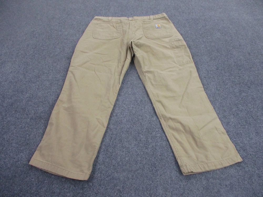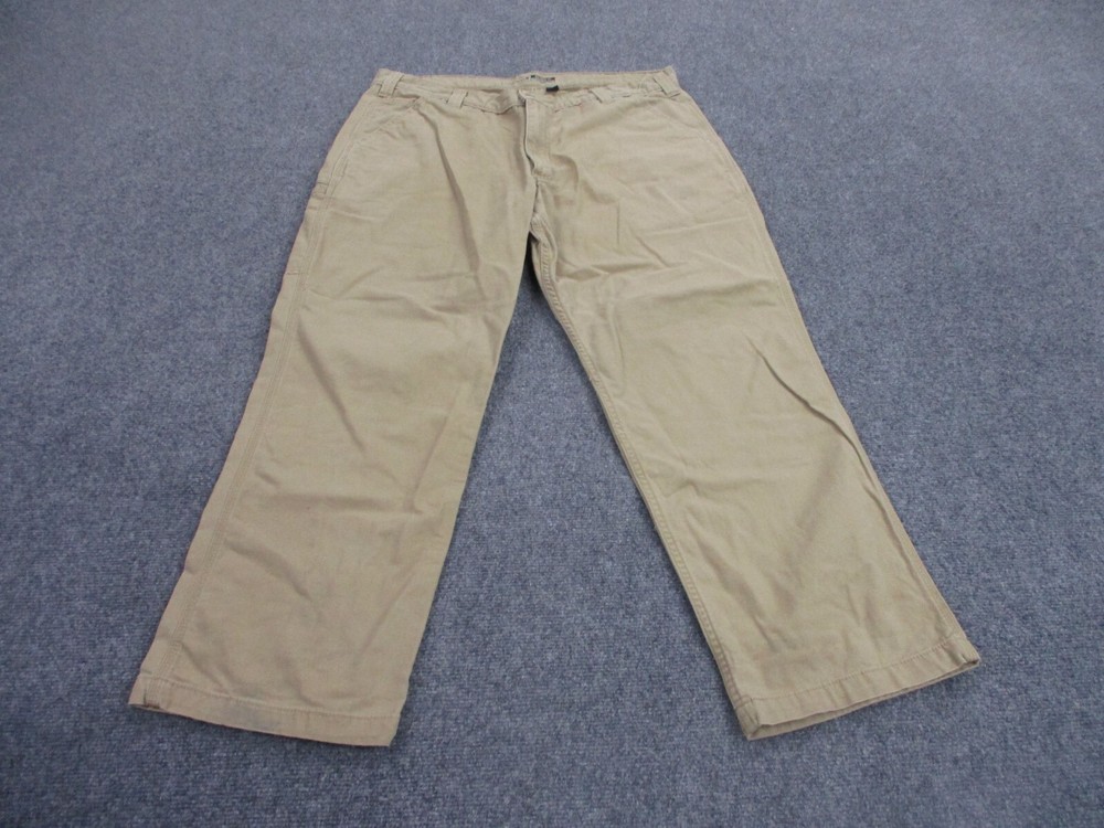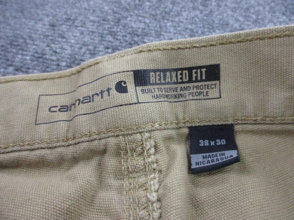 Handmade: No Theme: Outdoor Fabric Type: Canvas Material: Cotton, Spandex Size Type: Regular Suspender Buttons/Belt Loops: Belt Loops Style: Carpenter UPC: Does not apply Color: Beige Seller Notes: “Marks on front. Scratches on back. Check below for full description & photos.” Inseam: 29 in Brand: Carhartt Department: Men Pattern: Solid Garment Care: Machine Washable Product Line: Carhartt Closure: Zip Season: Fall, Spring, Summer, Winter Front Type: Flat Front Size: 38 Occasion: Casual Leg Style: Straight Features: Stretch Fit: Relaxed Personalize: No Pocket Type: Cargo Pocket Waist Size: 38 in Accents: Button, Zipper Type: Pants gtin13: Does not apply