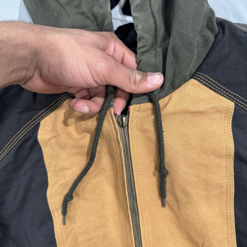 Color: Multicolor Department: Men Style: Jacket Brand: Carhartt Features: Full Zip, Hooded gtin13: NA Size Type: Regular Outer Shell Material: Cotton Type: Jacket Size: L Fabric Type: Canvas UPC: NA