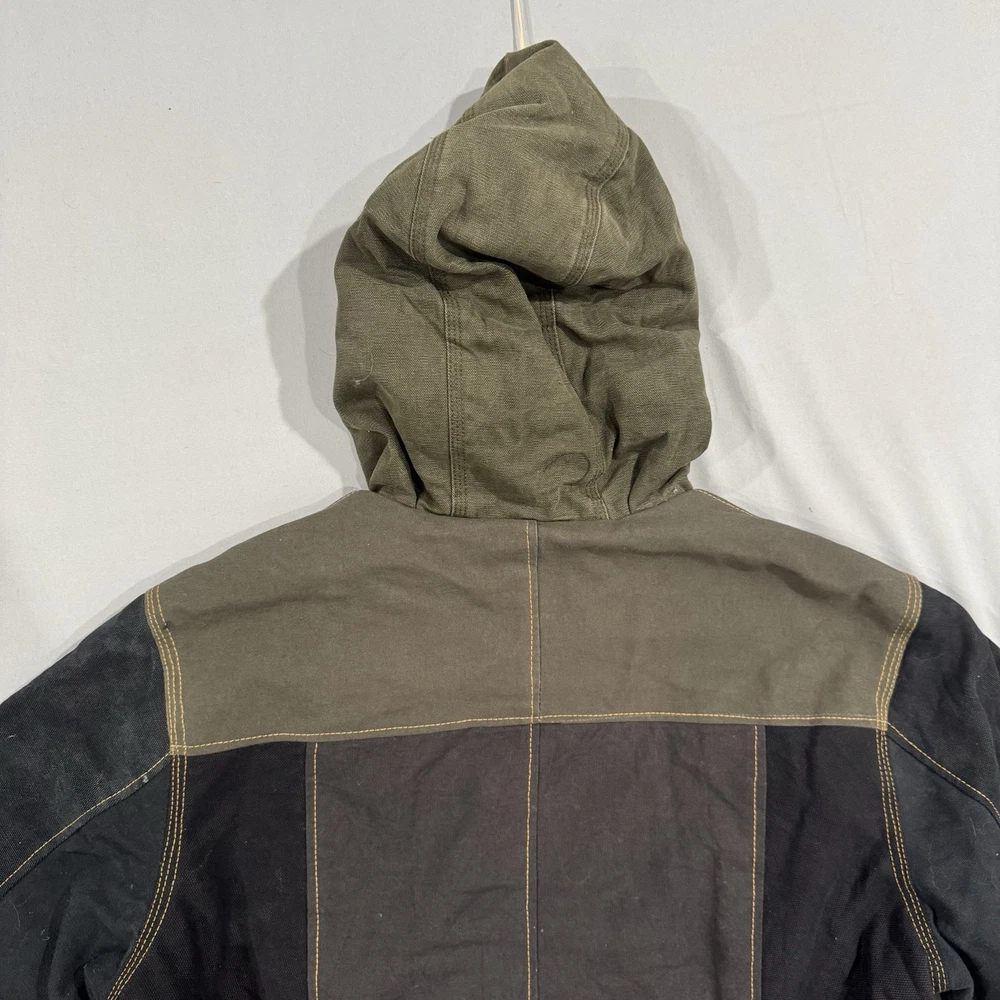Carhartt Reworked Mens Sherpa-Lined Hooded Canvas Jacket Large Full Zip with Patch