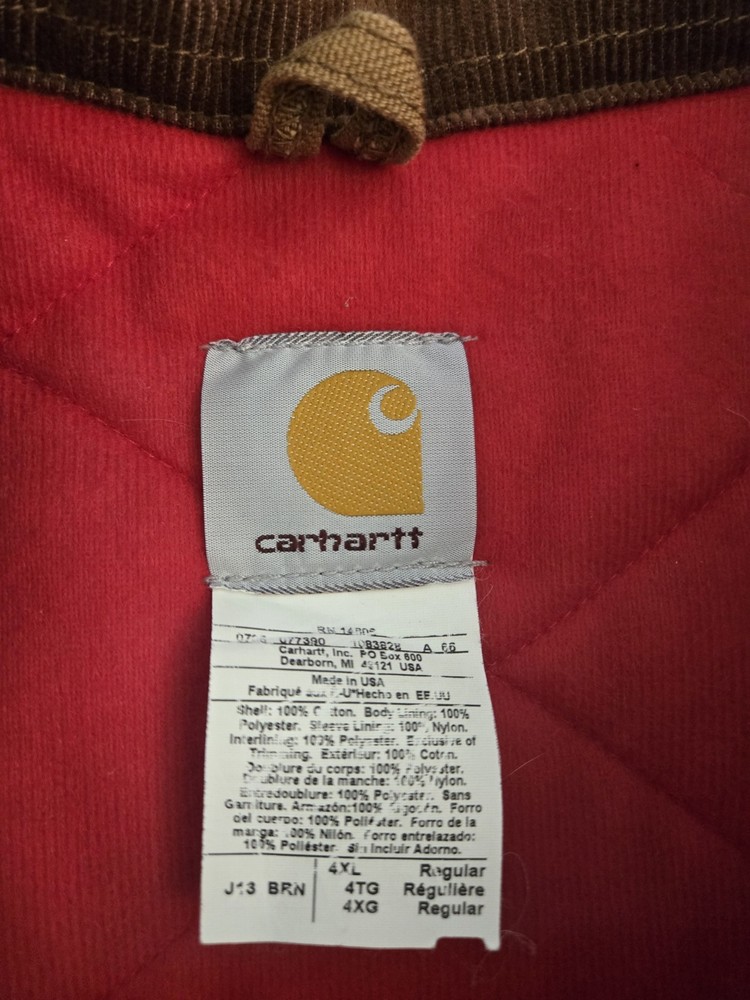 This jacket is a total game-changer—super sturdy, comfortable, and perfect for work or casual wear. The cotton canvas feels tough yet breathable, and the brown color gives it a classic, rugged look. Love the USA-themed details and the roomy 4XL fit. Even with minor marks, it’s built to last and keeps me warm in cooler weather. Carhartt never disappoints!
