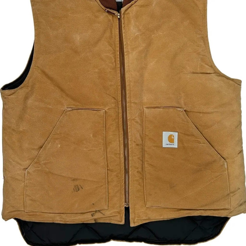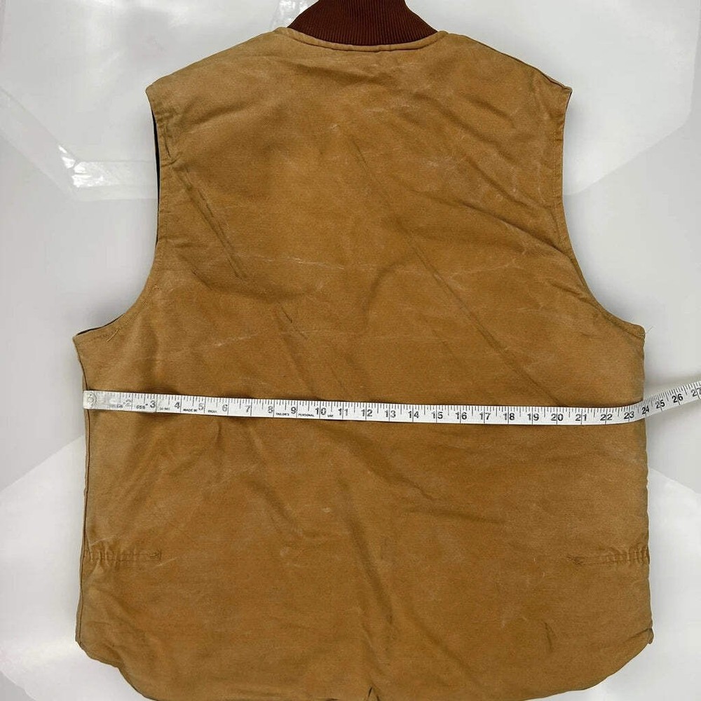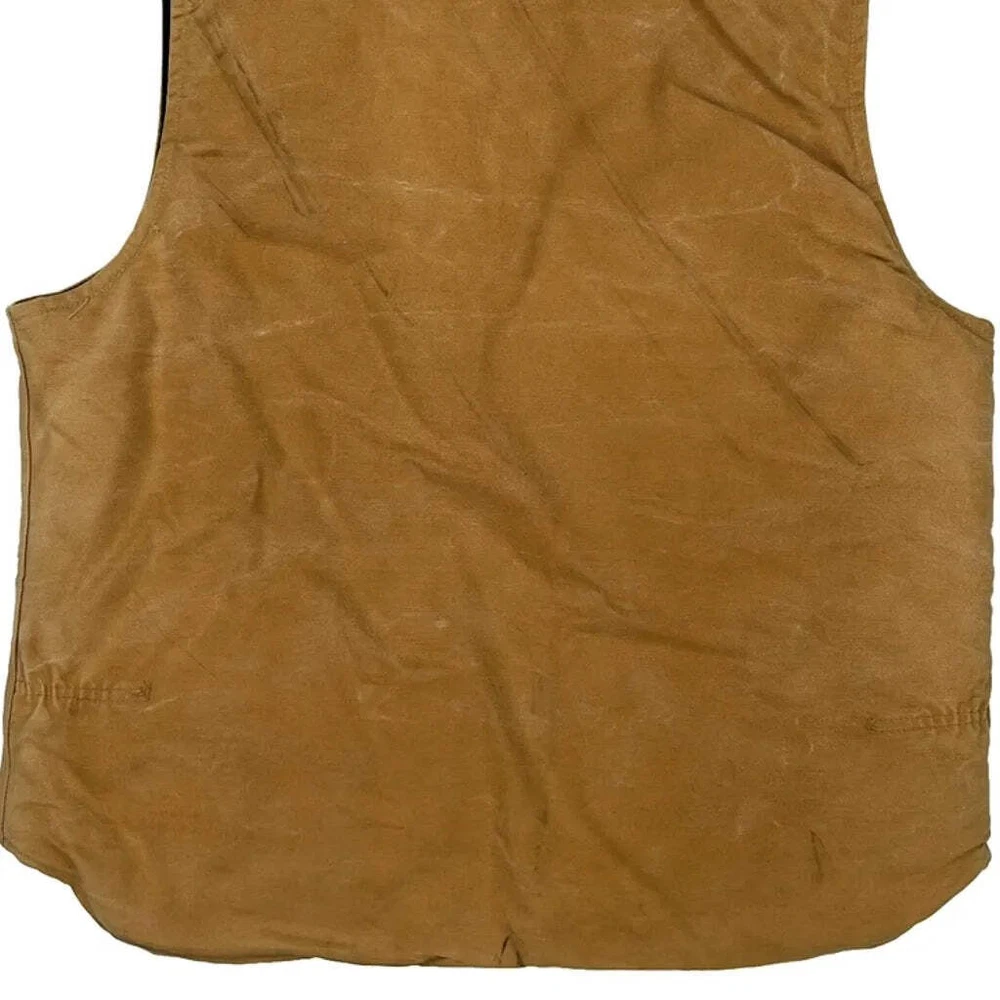 Style: Casual Outer Shell Material: Cotton Occasion: Casual Pattern: Plain Fit: Regular Fit Closure: Zipper Closure Season: Fall Color: Brown Vintage: Yes Brand: Carhartt Size: Large Fabric Type: Cotton Neckline: Round Neck Country of Origin: United States Size Type: N/A Personalize: No Department: Men Type: Vest