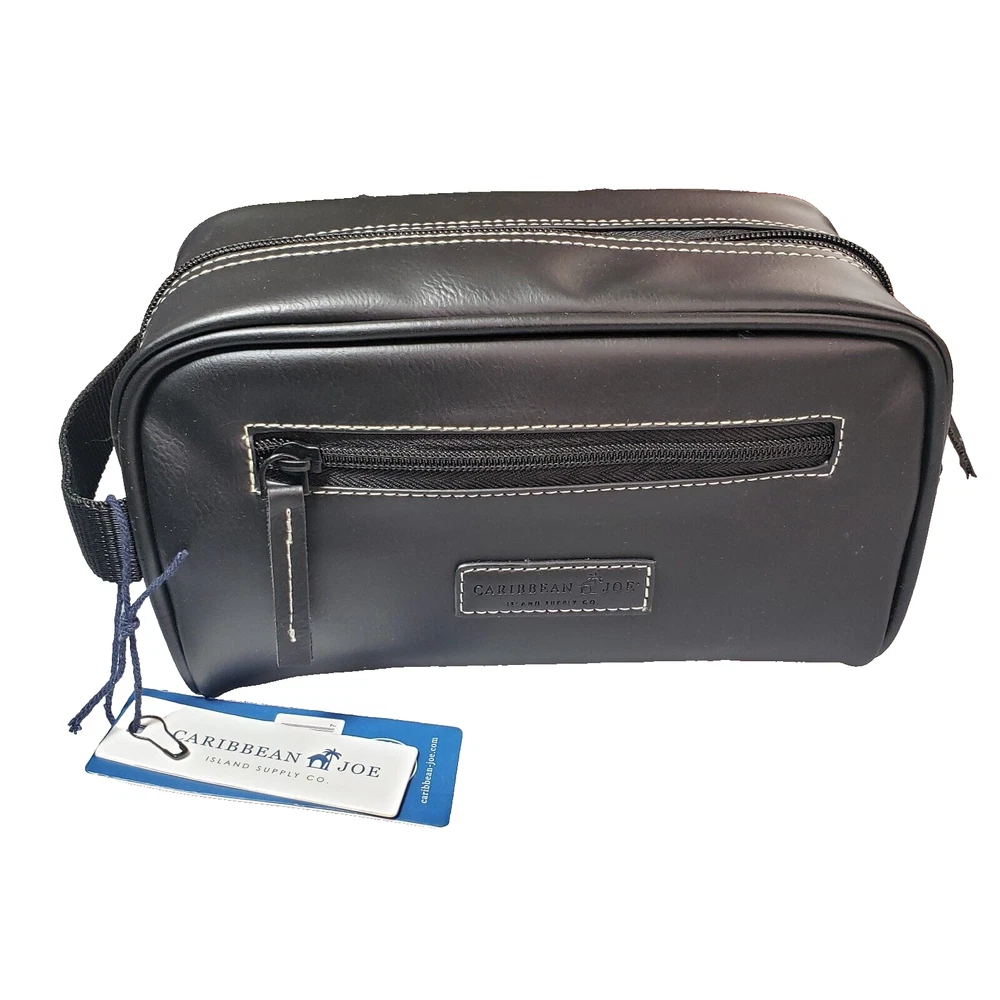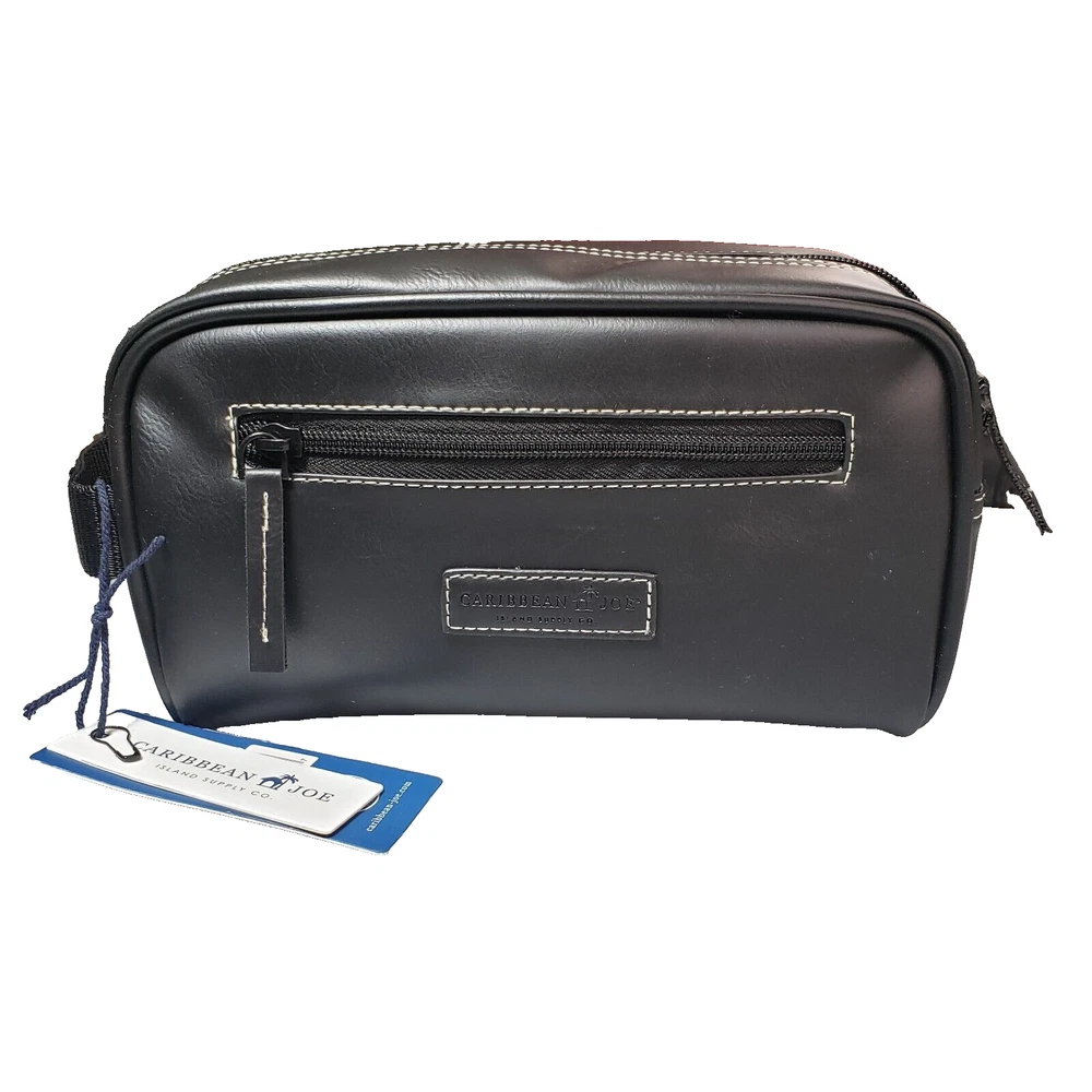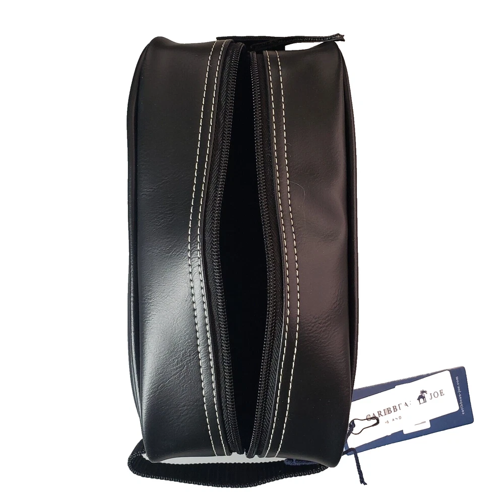 Caribbean Joe Men's Faux Leather Toiletry Black Travel Shave Dopp Kit Bag BNWT
