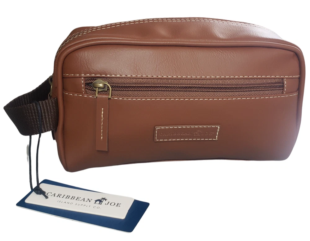 Caribbean Joe Men's Faux Leather Toiletry Tan Travel Shave Dopp Kit Bag New