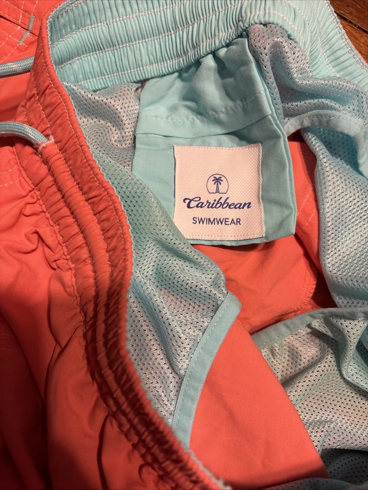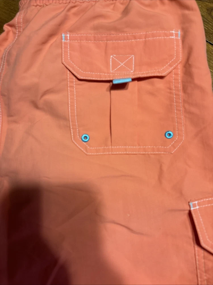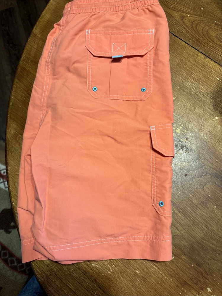 Caribbean Swimwear Swim Trunks Mens Orange Lined Pocket Bathing Suit Medium
