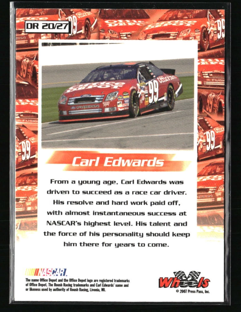 Carl Edwards 2007 Wheels High Gear Driven #DR20 Racing Card