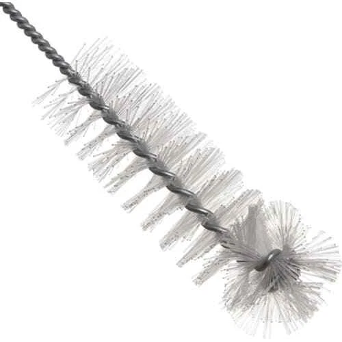 This 12" tube brush will has polyester bristles that are twisted into flexible wire handles for efficient cleaning of bacteria prone taps spouts plungers tubes blades and equipment fittings. Max Brush Diameter: 2" Min Brush Diameter: 1" Brush Length: 3.25" Overall Length: 12" Brush Material: Polyester Handle Material: Twisted Wire Base resins used to produce bristles are made of FDA approved materials BPA free Model #: 4015400 "