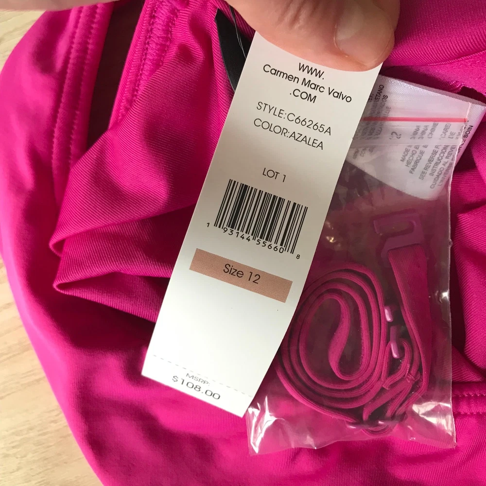 Carmen Marc Valvo Swimsuit 12 Pink One Piece One Shoulder Keyhole Twist Swim $108 MSRP New with tag SKU 3468 **Please see all pictures for full item condition, details, and approximate measurements** - Ships Same/Next Day, Professional Seller, Offers Welcome, Like or watch for price drops - Item in photos is exact item you will receive - I list new items daily, be sure to browse my store/closet for more items - Bundle pricing and combined shipping available for additional savings - Feel free to send a message
