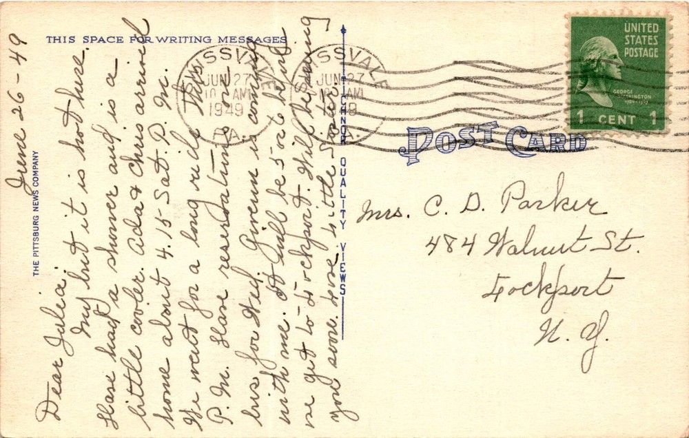 MAKE AN OFFER. THE MORE YOU BUY THE BETTER DEAL I WILL ACCEPT The postcard is from Pittsburgh, Pennsylvania, and features a picture of the Carnegie Library, Museum, and Music Hall. The sender mentions the hot weather and a recent shower that provided some relief. They note the arrival of Ada and Chris, a long ride they took, and plans to go to a music event.