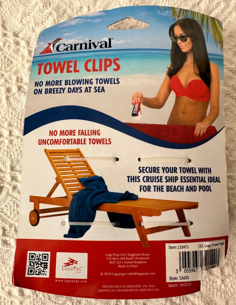 Carnival Cruise Line Towel Clips Set Holds Securely NEW NIP