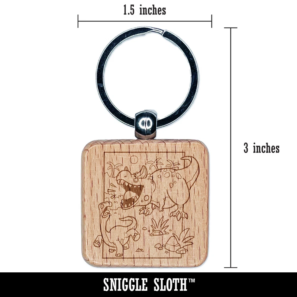 Carnotaurus Horned Dinosaur Roaring Engraved Wood Square Keychain Tag Charm