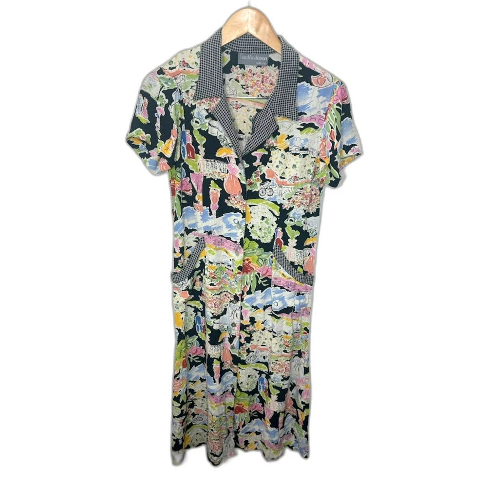 Carol Anderson 90s Button Front Dress Size 10 floral bike print maximalist EUC Super cute dress in beautiful shape! Buttons up the front. Same or next day shipping, offers welcome!