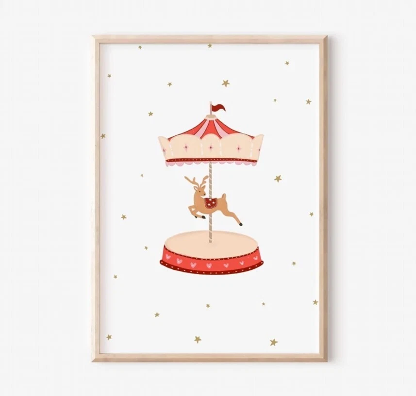 Carousel Art Print, Nursery Wall Decor, Whimsical Kids Room Art