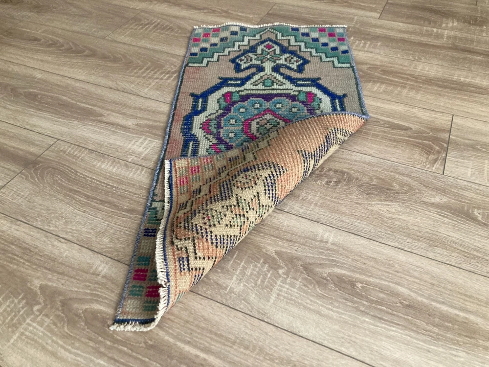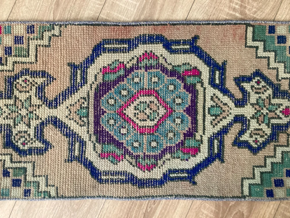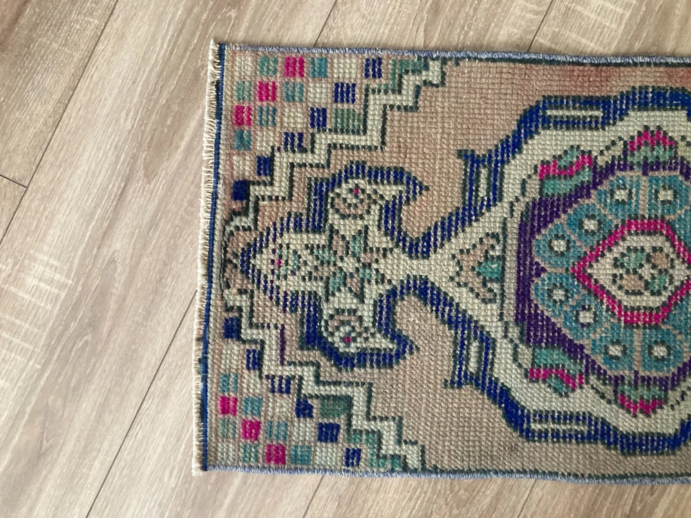 Doormat Rug, Boho Deco, Handmade Rug, Home Decor, Carpet, Wool Rug 1,3 x 2,8 ft An old (approximately 45-60 years old) hand knotted / hand woven Turkish rug from the Middle Anatolian Region and made of genuine, high quality wool, in natural colors. Our distinguished Antiques and Vintage rugs, each with its own unique story, have been carefully selected from every corner of Turkey. RUG DETAILS * One-of-a-kind vintage rug * Dimensions: 1,3 x 2,8 ft = 16 x 34 inc = 42 x 88 cm * Low pile: approximately 0.2"(0.5 cm) * Dyed with natural dyes * Product code : YDD 353 SHIPPING * Free shipping on all items. * Usually shipped via FedEx or UPS. * Item will be ready for shipment within * Estimated delivery 3-5 business days 1-3 business days with a tracking number. All of our rugs have been professionally cleaned and ready to ship before being listed. These unique vintage rugs have normal wear related to their age. We believe this adds to the authenticity of these hand-woven beauties. We inspect all rugs carefully before Shipping, but in the unlikely event that due to our fault, the goods are not fit for purpose, damaged/defective, or we ship the wrong item, we will issue a 100% refund. We are a team of experienced professionals who are dedicated to ensuring your items arrive safely. Please note that our photos accurately represent the colors of the rug, however it may look different in the light in your home or against different colored floors. We are so excited to share the beauty and art of rugs with you and to see how your personal spaces transform! I do my best to build a great experience in online rug shopping for you, just look at the reviews. Please feel free to write me over conversation if you have any questions about the rug or price. I will be happy to answer to you. Thank you, Tasselsrug.