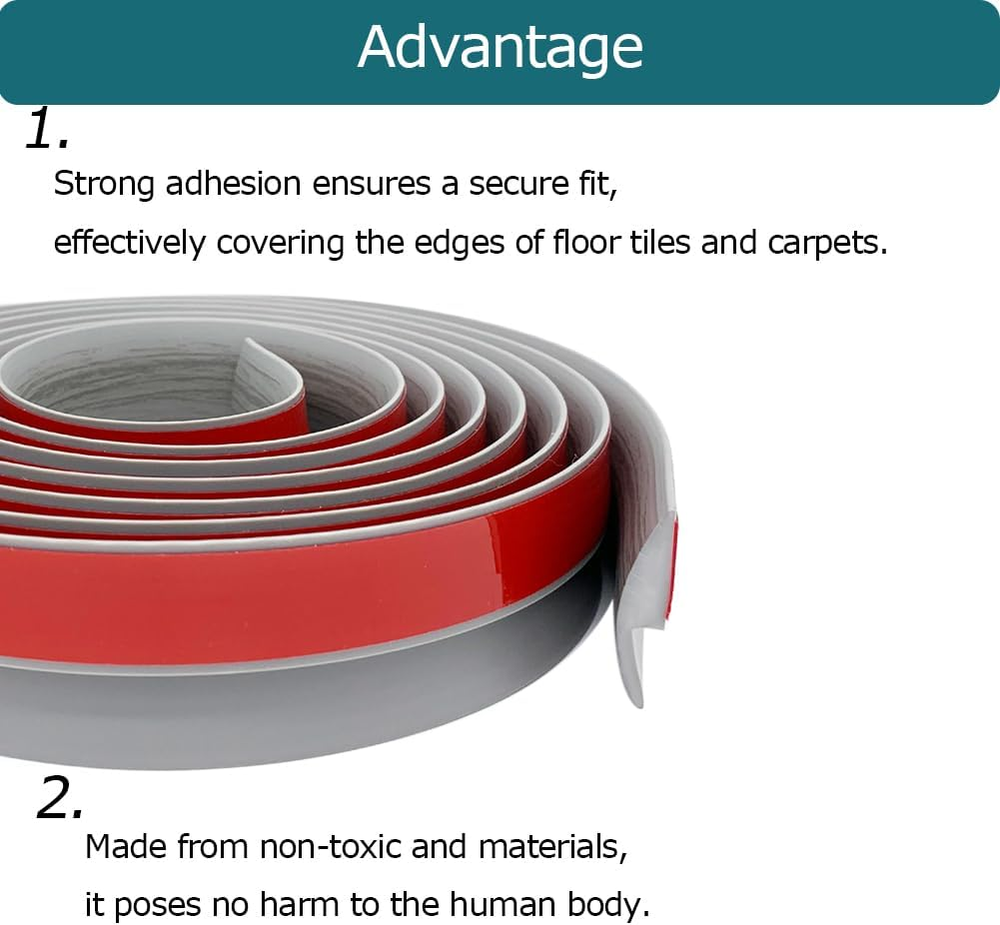 【What is it】This rubber threshold transition strip is specially designed for the transition between floor and carpet/threshold to fix, decorate, and protect children or the elderly from tripping. It is perfect for creating a seamless and safe transition in your space. 【Reasons to Buy】 This high-quality rubber carpet edge decoration offers several key benefits. Its strong adhesion ensures a secure fit, effectively covering the edges of floor tiles and carpets. The soft and comfortable texture provides a pleasant stepping experience. Made from non-toxic materials, it poses no harm to the human body. 【Ideal Option】Whether for homes, hotels, restaurants, or offices, this versatile floor transition strip is a perfect choice. It seamlessly transitions between different flooring materials such as wood floors to carpets, tiles to carpets, tiles to door thresholds, and even covers gaps on stovetops. Not only does it serve its practical purpose, but it also enhances the aesthetic appeal of your space. 【Easy to Install】Installing this carpet edge trim is a breeze. Simply clean the floor surface, then peel off the red back adhesive and stick it directly on. For optimal adhesion, you can apply heat with a hair dryer. 【Service】We take great pride in the quality and convenience of our carpet to tile transition strip, and we are confident that you will love it too. If you encounter any issues, please do not hesitate to contact us. We provide timely responses and offer the perfect solutions for any problems you may encounter. Product description Designed for the transition between floor and carpet/threshold to fix, decorate, and protect children or the elderly from tripping. Specification Strong adhesion ensures a secure fit, effectively covering the edges of floor tiles and carpets. Made from non-toxic materials, it poses no harm to the human body. Easy to install Simply clean the floor surface, then peel off the red back adhesive and stick it directly on. For optimal adhesion, you can apply heat with a hair dryer. Application Whether for homes, hotels, restaurants, or offices, this versatile floor transition strip is a perfect choice. It seamlessly transitions between different flooring materials.