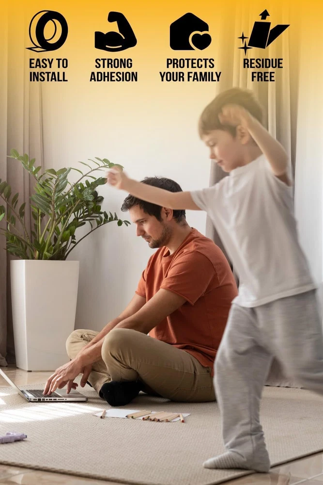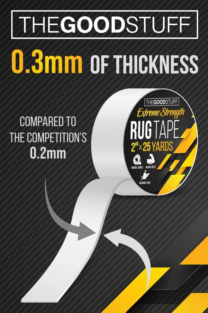 Keep your family safe from tripping hazards with the strongest carpet and rug tape on the market. With 50% thicker tape than the competitors, Essentials rug tape for hardwood floors, is durable but comes off without residue or harming your delicate surfaces. Whether you use it indoors or outdoors, on hardwood floors or concrete, stick it and know it’s not going to budge. Our unique blend of adhesives are even safe for finishes like leather and marble. Removal is safe and easy, too. Peel the rug gripper for hardwood floors tape off by hand with zero residue or damage. And carpet tape is so durable, you can reattach it multiple times after cleaning or rearranging. Use double-sided carpet tape with mats, rugs, carpets or even to splice together multiple carpets. Or choose it as a no-residue, easy-to-remove alternative to duct tape for minor repairs, hanging art, protecting furniture from pets, or arranging curtains and other decorative fabrics. Essentials Double Sided Carpet Tape is the ultimate tape for all of your taping needs. Surface Compatibility: Concrete Wood Leather Tile Marble Vinyl Various other indoor and out door surfaces Forget rug pad sticky stickers, this anti slip carpet gripper for area rugs keeps you safe from slips. The perfect rug holder for carpets, rugs and runners. Use this tape instead of carpet stickers for area rugs, command rug strips, rug tack down, and rug carpet anchor for a stay put rug that stays in place. Unlike, rug corners no curl for carpet, this tape keeps all your edges in place. Not just, slip resistant rugs, but no slip at all. An area rug holder and rug stoppers for hardwood floor cut to length altenative, for all size rugs. Add this carpet gripper for area rugs to your basket now, because it'll protect your home! PROTECT YOUR FAMILY - According to the National Electronic Injury Surveilance System, over 40,000 people are injured by unsecured and curled rugs every year. Act now, and secure your rugs with this sided heavy duty rug grip tape.