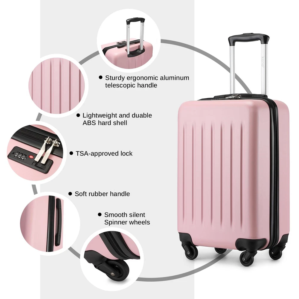 PORTABLE MINI CARRY ON: Product dimensions (includes wheels and handles): 18.9” x 11.8” x 7.9”. Weight: 4.7 lbs. PACKING CAPACITY: 27L. Even 6-year-old children can easily use our products. 19 inch carry on luggage meets most carry-on size restrictions for those 1-3 days traveling domestically. LIGHTWEIGHT AND DURABLE HARD SHELL: Made from durable, lightweight ABS hard shell, scratch and pressure-resistant, dirt-proof and waterproof. luggages go through insanely strict quality control test standards, to ensure our products can withstand the rigour of modern transport. IDEAL INTERIOR SPACE TO KEEP BELONGS TIDY: Designed with 2 roomy fully lined compartments. The packing straps hold your clothes in place, a zipper mesh pocket for anything you want to keep separate. Not only a perfect small luggage for yourself, also a cute gift for your families, friends, or school children. MORE EFFORTLESS TRAVLING: Our hardshell luggage comes equipped with Quiet airplane spinner wheels and an adjustable 3-level aluminum telescoping handle(extended heights: 18.9inch), allow you to quickly maneuver in tight spaces and it’s sturdier than most of the telescoping handle on the market. COMFORTABLE AND SAFE: Comes with a 2-year warranty. Safety Combination Lock & Securely Mounted Short Handle, you can make sure your valuables are secure and safe and use conveniently when traveling. Hardside carry on luggage perfect for work travel, weekend getaways, or as international carry-on.
