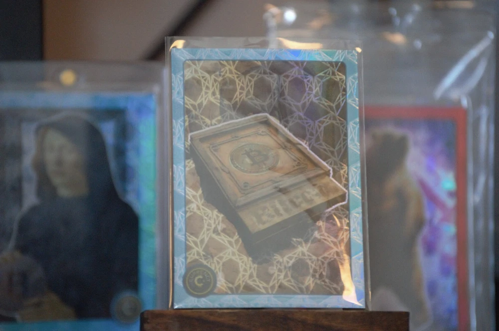 Cardsmiths Currency Series 4 #50 Bitcoin Aqua. A coveted piece for enthusiasts and investors alike. With its unique aqua hue, this card stands out as a visually striking representation of the iconic cryptocurrency. Limited to just 25 copies, this rare find is numbered 03/25, making it a highly sought-after addition to any collection. Its distinct design and limited availability make it an intriguing piece for collectors and fans of the blockchain phenomenon.