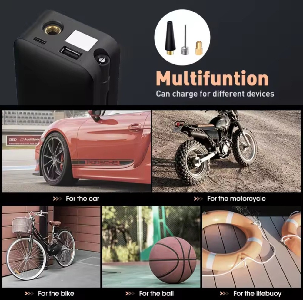 This portable tire pump is a lifesaver! Super fast and easy to use—just plug it into your car’s 12V outlet, and it inflates tires in no time. Compact enough to stash in the trunk, yet powerful enough for emergencies. No more struggling with manual pumps or gas station air hoses. A must-have for any driver!