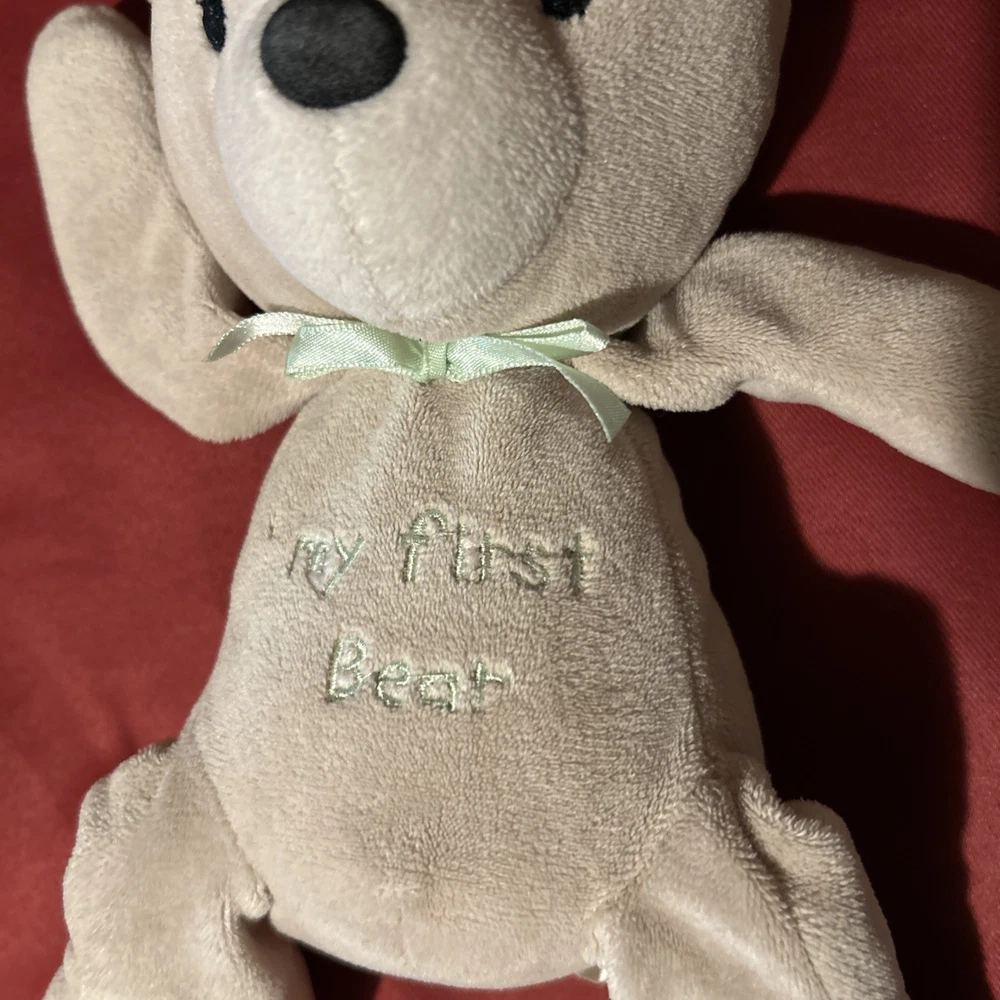 The Carters 2007 Just One Year My First Bear Floppy Plush Stuffed Animal is a beige-colored bear plush toy from the brand Carter's. Rare. HTF. Pretty good overall condition. See photos for condition and measurements.