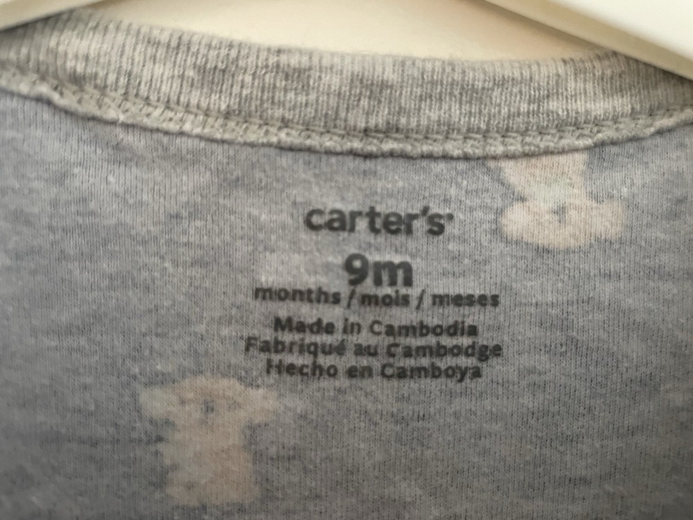 Closure: Snap Color: Navy Number of Pieces: 1 Piece Season: Fall, Spring, Winter Sleeve Length: Long Sleeve Theme: Animals, Koala Material: 100% Cotton Occasion: Casual Garment Care: Machine Washable Style: Sleep & Play Pattern: Animal Print Type: One-Piece Brand: Carter's Size: 9 Months Accents: Embroidered Country of Origin: Cambodia Features: Comfort, Easy Care, Lightweight, Stretch Seller Notes: “In good condition. Color is faded from use. Free of rips or stains.” Department: Boys