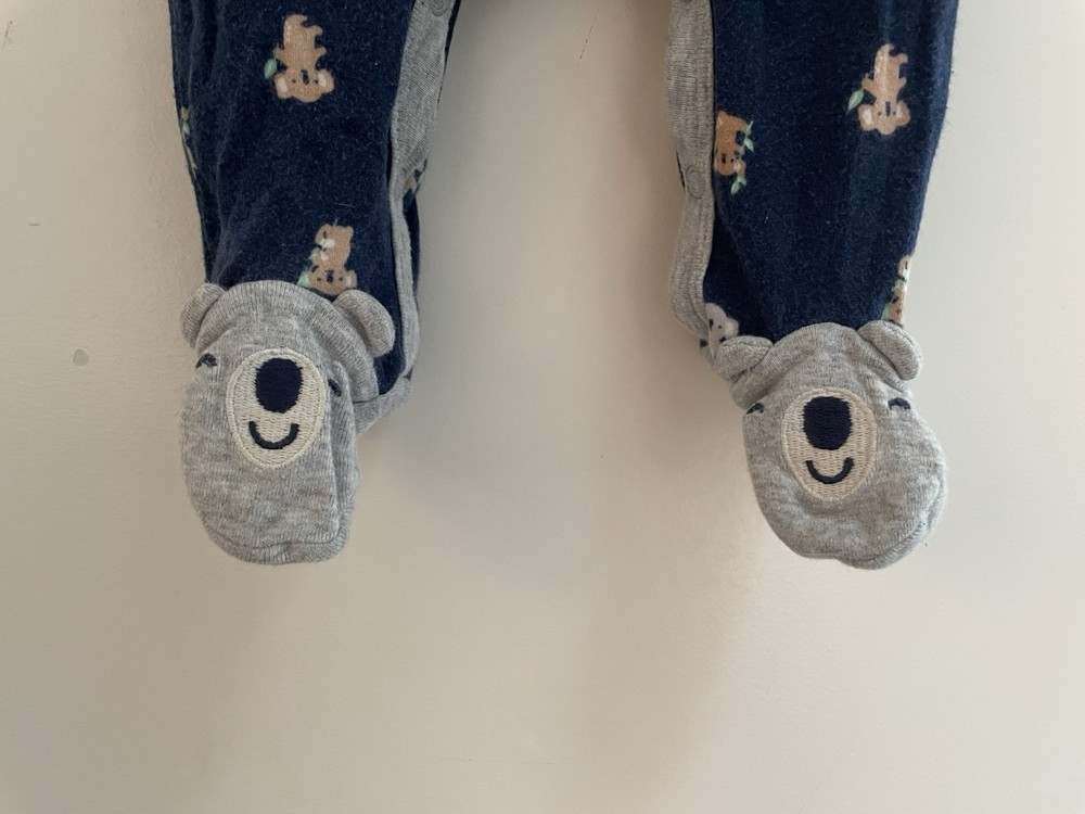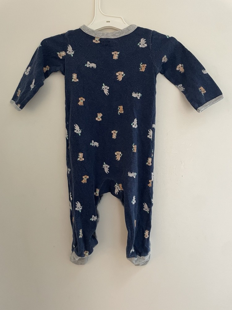 Carters Baby Boy Cute Koala 100% Cotton Long Sleeve Snap-Up Sleep & Play Navy 9M. Condition is pre-owned. Smoke free, pet free home. Shipped via USPS Ground Advantage. In good condition. Color is faded from use. Free of rips or stains.