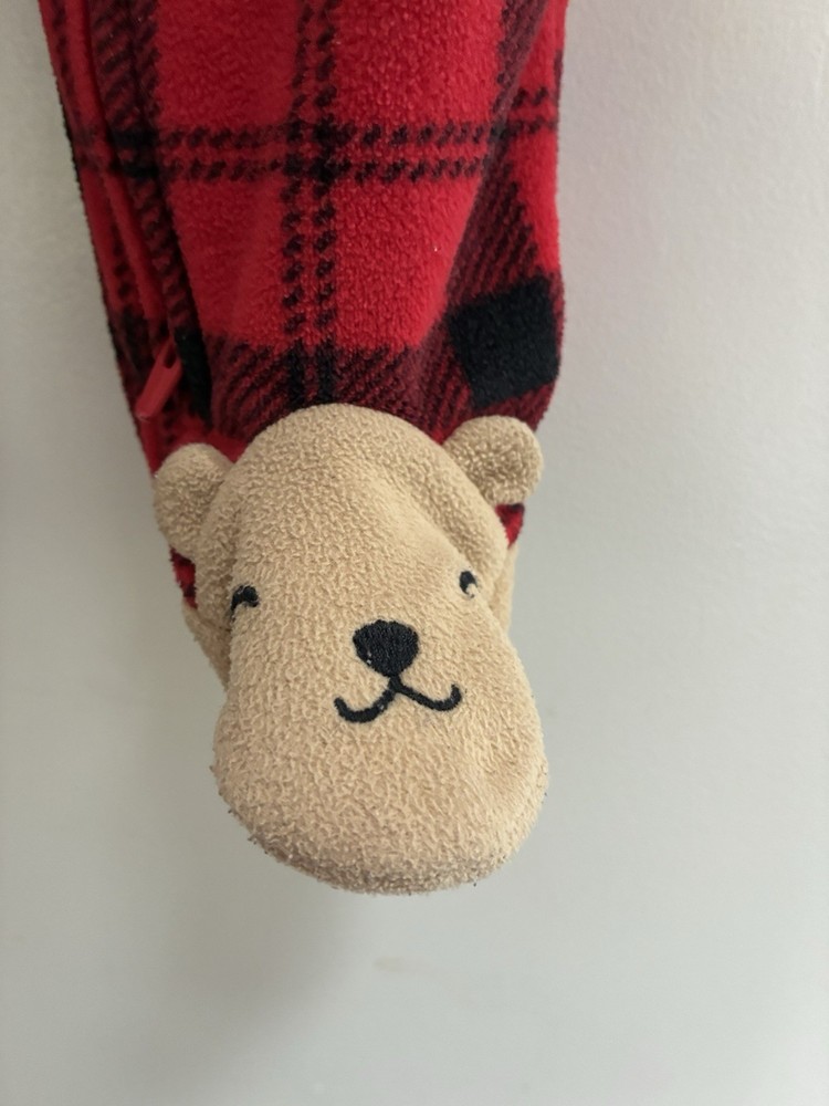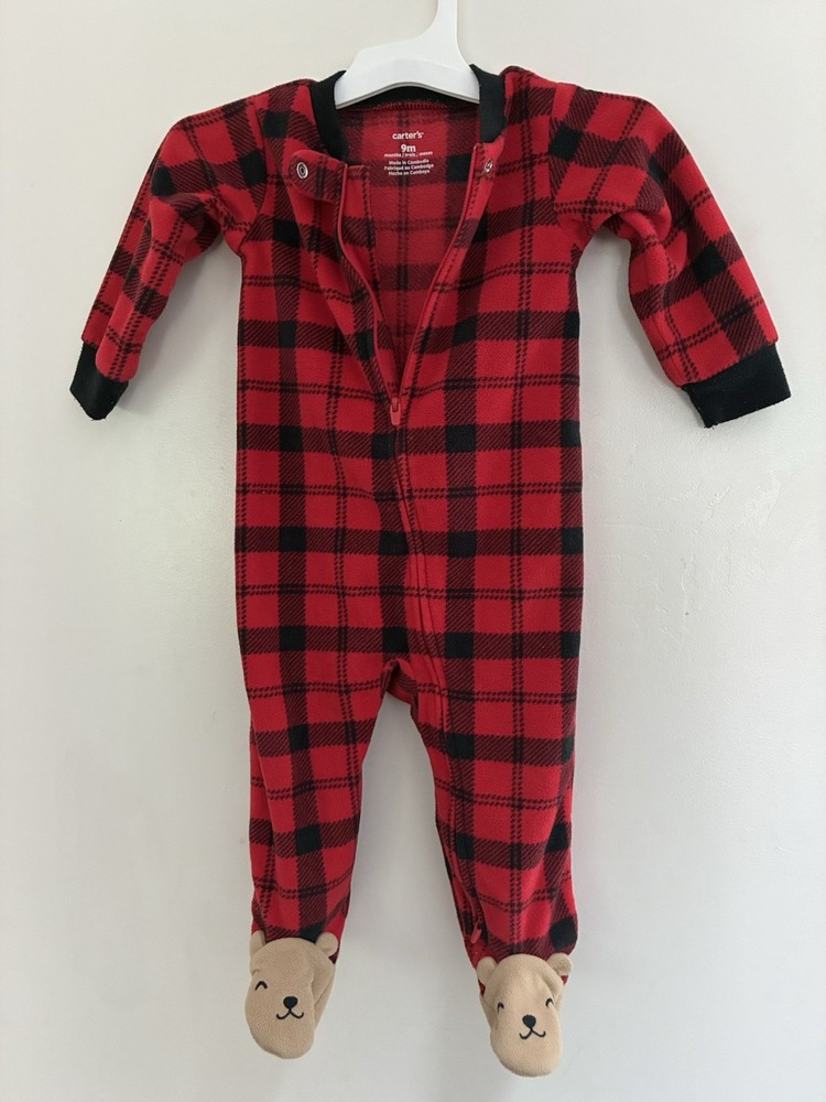 Carter's Baby Boy Girl Cute Bear Footie Cozy Fleece Buffalo Plaid 1-Piece Red 9M. Condition is pre-owned. Smoke free, pet free home. Shipped via USPS Ground Advantage. In very good condition. Free of rips or stains.