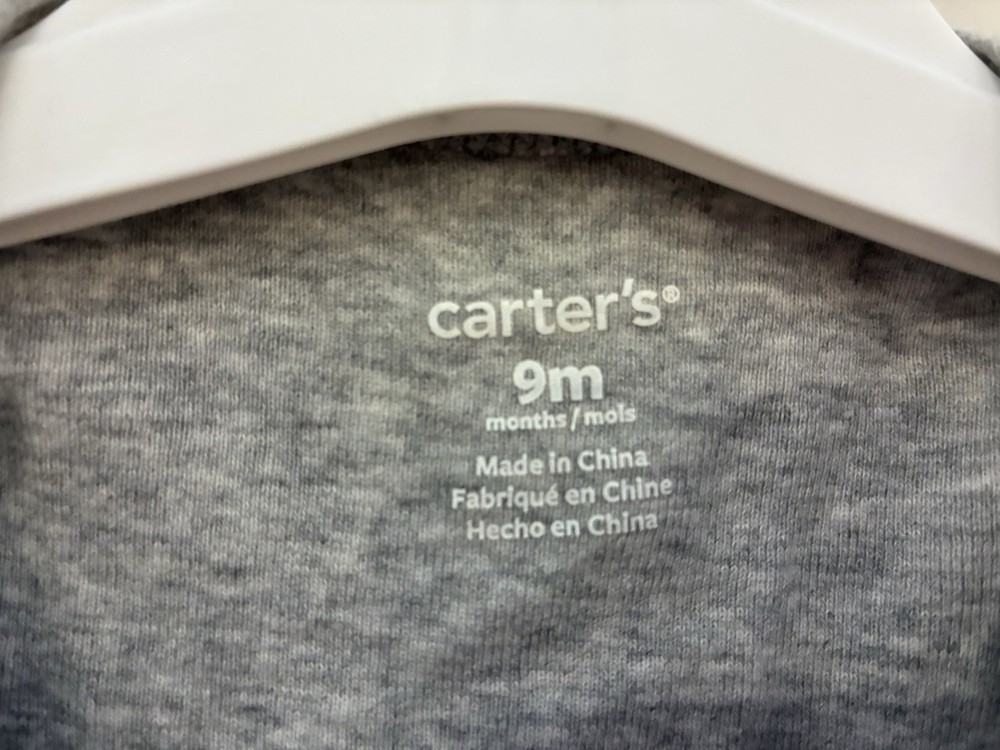 Occasion: Casual Number of Pieces: 1 Piece Type: One-Piece Seller Notes: “In very good condition. Free of rips or stains.” Color: Heather Gray Department: Boys Style: Bodysuit Closure: Snap Features: Comfort, Easy Care, Lightweight, Stretch Garment Care: Machine Washable Brand: Carter's Size: 9 Months Theme: Food & Drink Pattern: Graphic Print Material: 100% Cotton Sleeve Length: Short Sleeve Character: Boy Season: Fall, Spring, Summer Country of Origin: China Set Includes: Bodysuit