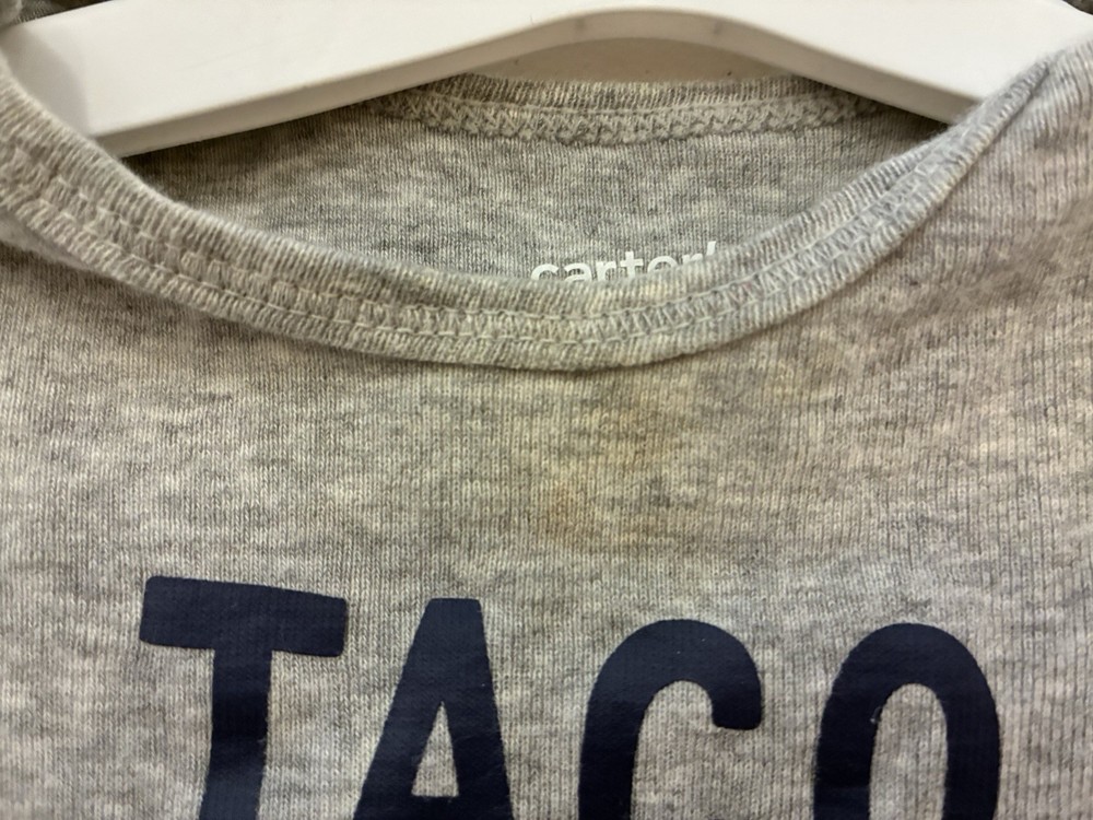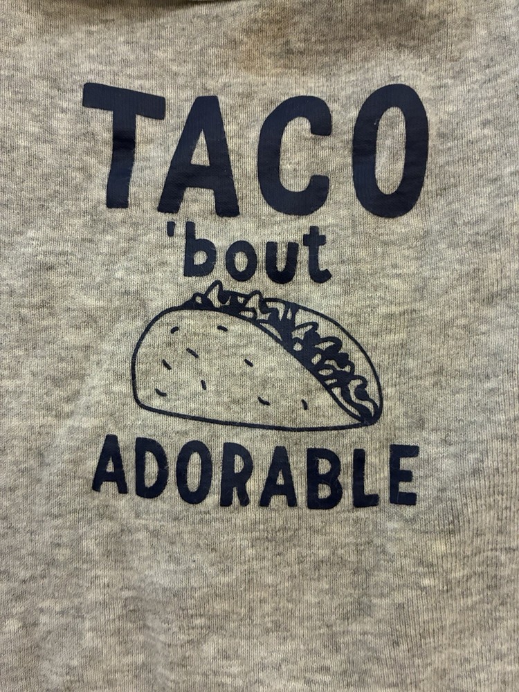 Carter's Baby Boy Taco Graphic 100% Cotton Short Sleeve Bodysuit Heather Gray 9M. Condition is pre-owned. Smoke free, pet free home. Shipped via USPS Ground Advantage. In very good condition. Free of rips or stains.
